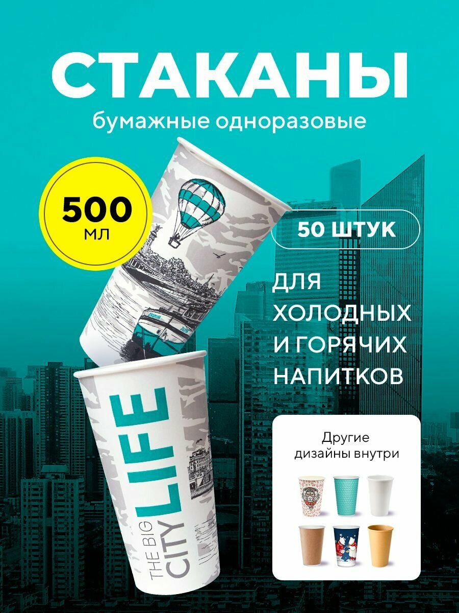 СохранитьБумажные одноразовые стаканы, 500 мл, Big City Life, однослойные, для кофе, чая, холодных и горячих напитков, 50 шт в упаковке интересное: