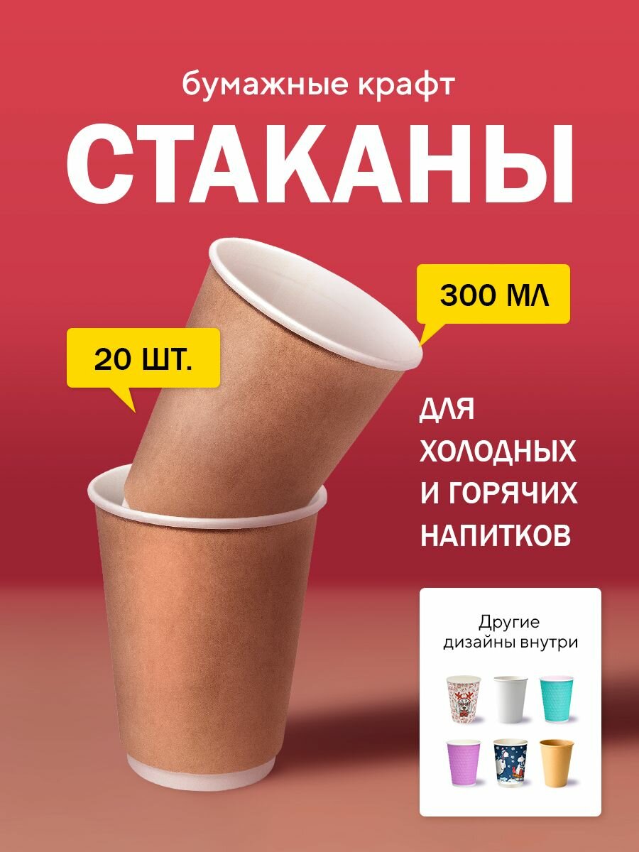 СохранитьБумажные одноразовые стаканы, 300 мл, Крафт, двухслойные, для кофе, чая, холодных и горячих напитков, 20 шт в упаковке интересное: