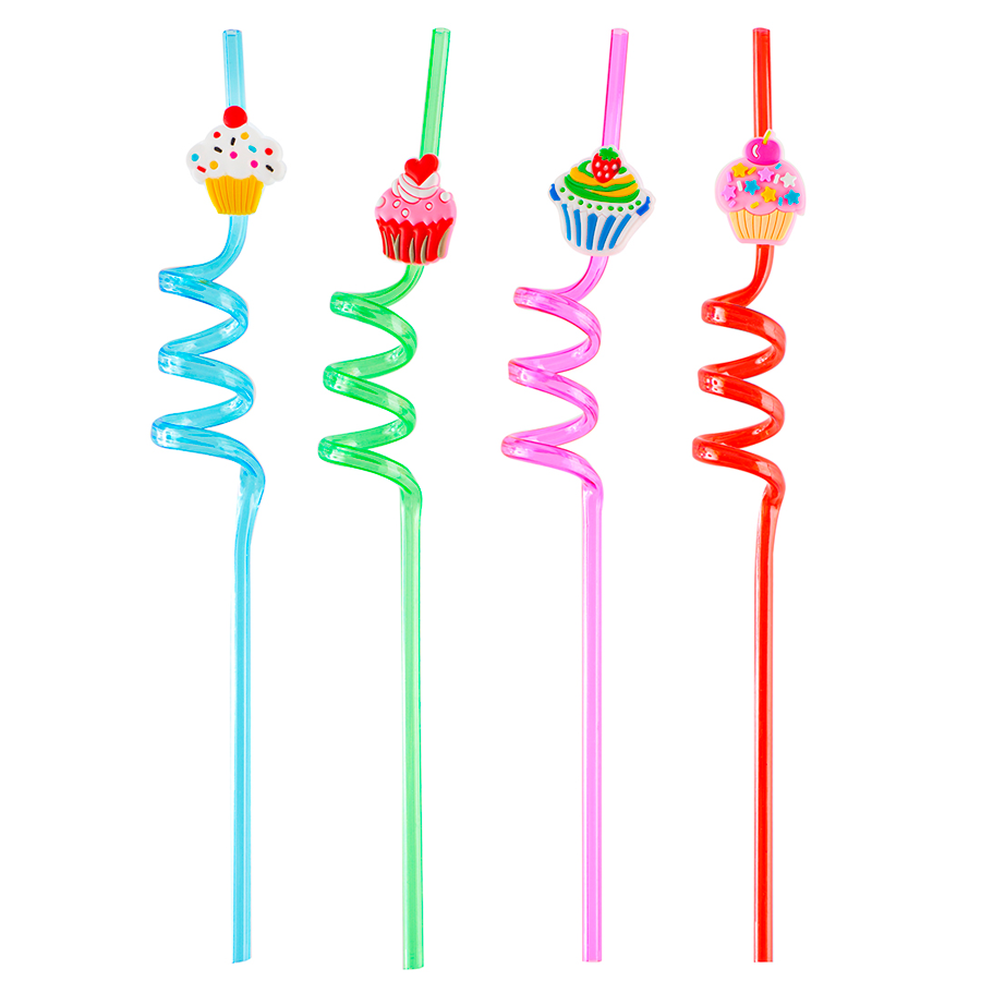 Купить Трубочки для коктейлей и напитков Кексы, разноцветные, 27 см, 4 шт.