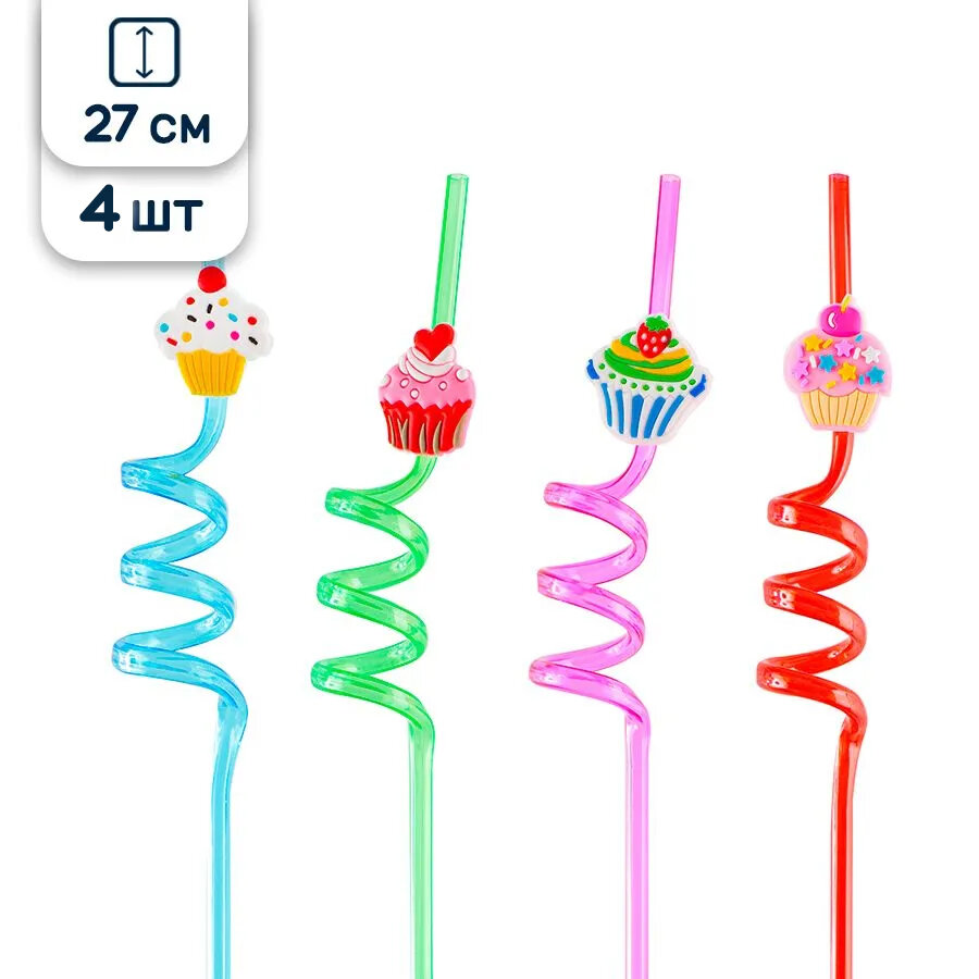 Трубочки для коктейлей и напитков Кексы, разноцветные, 27 см, 4 шт. интересное: