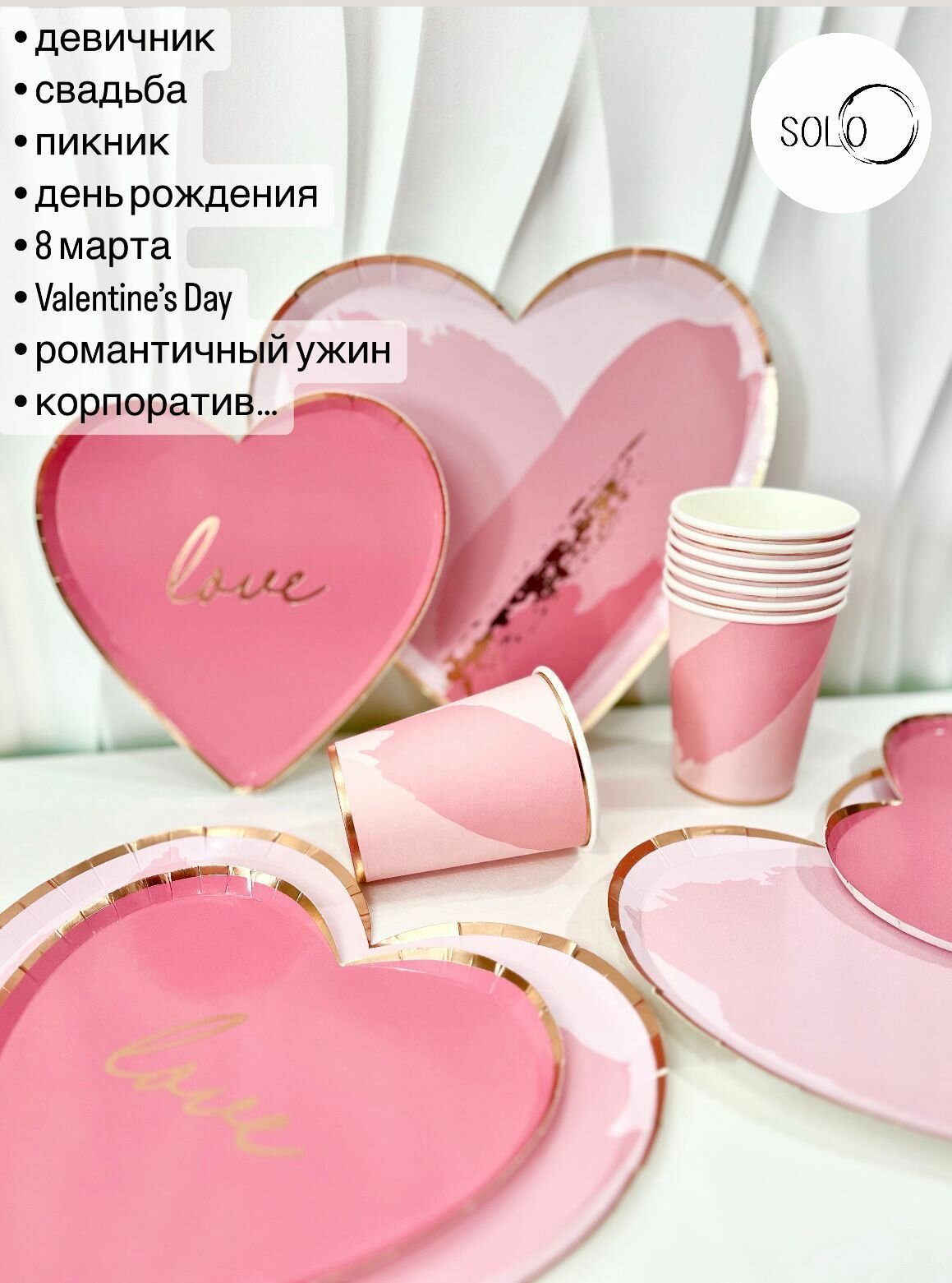 Набор одноразовой посуды для праздника "LOVE" интересное:
