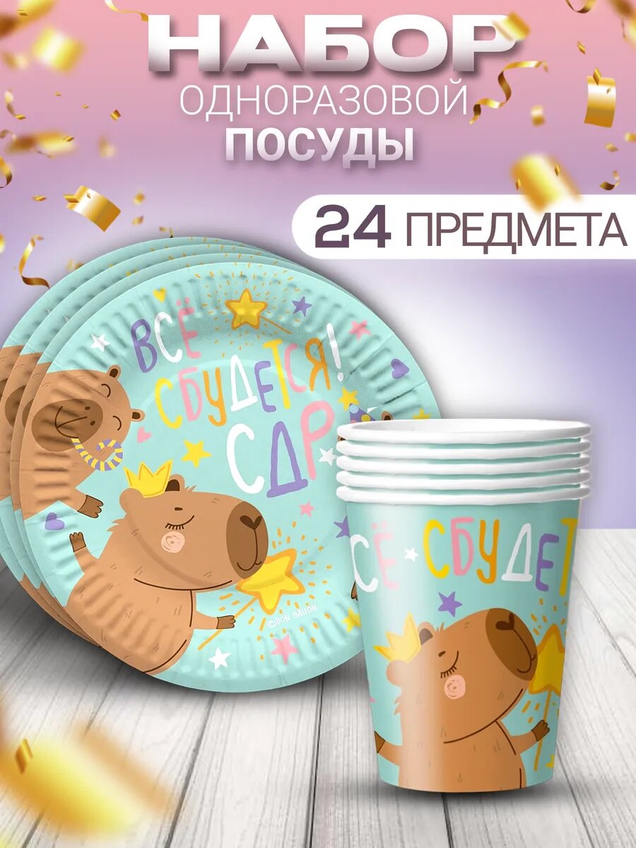 Одноразовая посуда набор Капибара интересное: