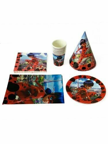 Купить Набор шаров и одноразовой посуды для праздника Леди Баг, 10 персон