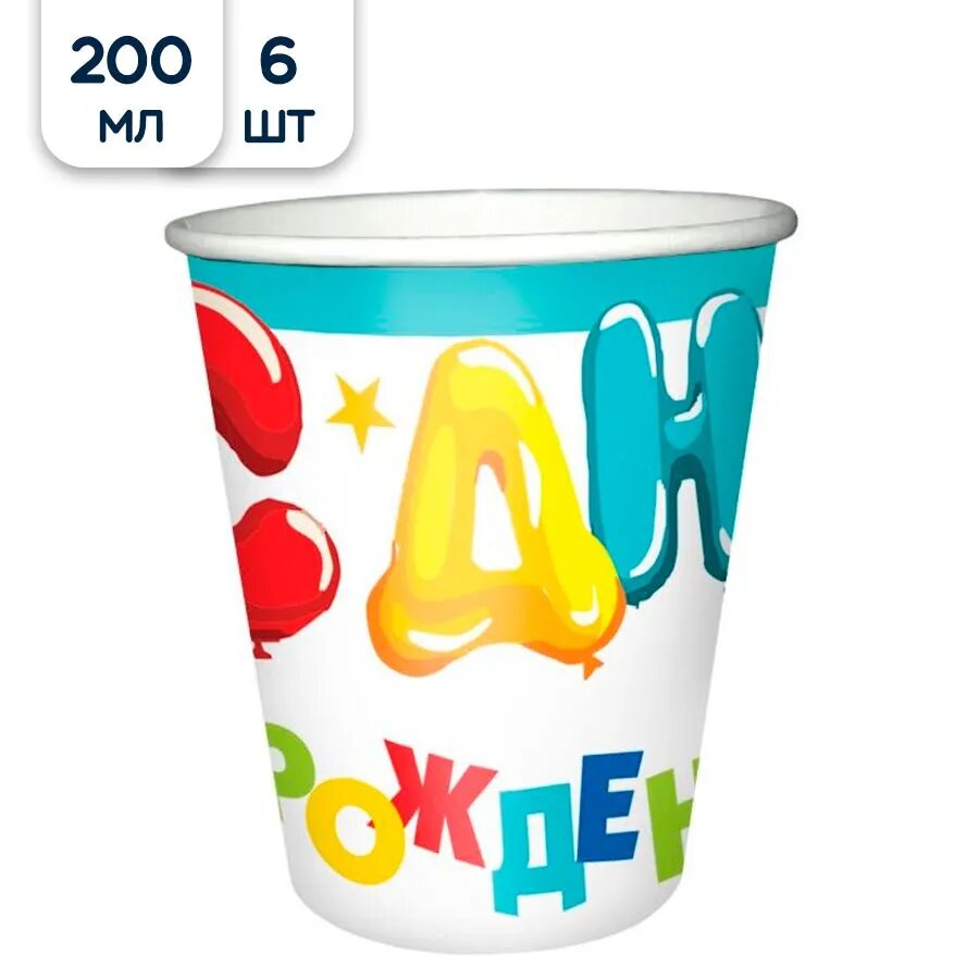 Стаканы одноразовые бумажные Конфетти, С Днем рождения, 200 мл, 6 шт. интересное: