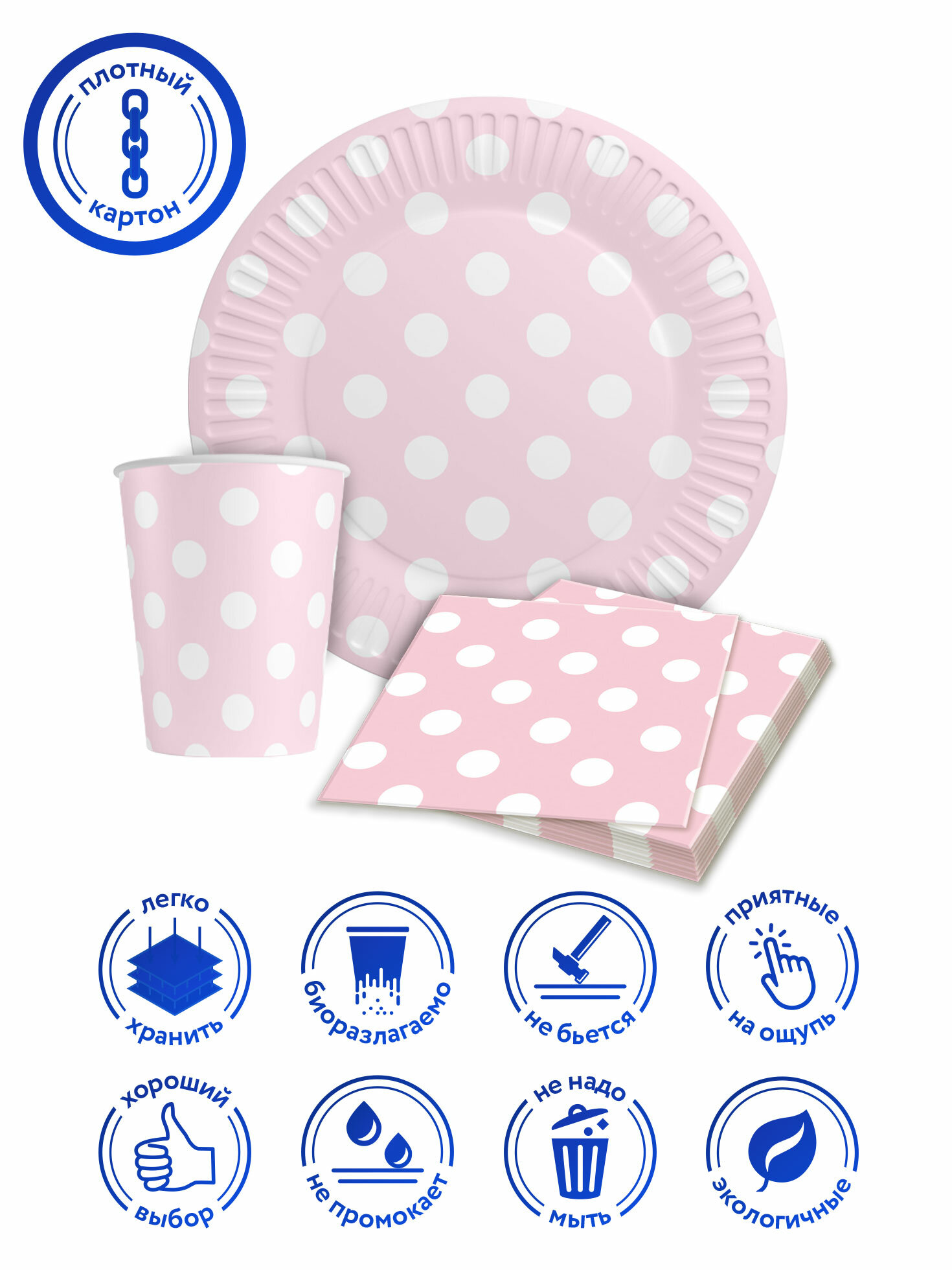 Купить Набор бумажной одноразовой посуды для праздника Горох (салфетки 20 шт. стакан и тарелка по 6 шт) ND Play
