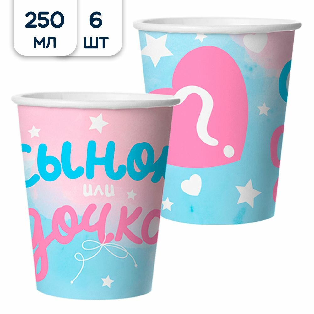 Стаканы одноразовые бумажные Гендер Пати, Сынок или Дочка, 250 мл, 6 шт. интересное: