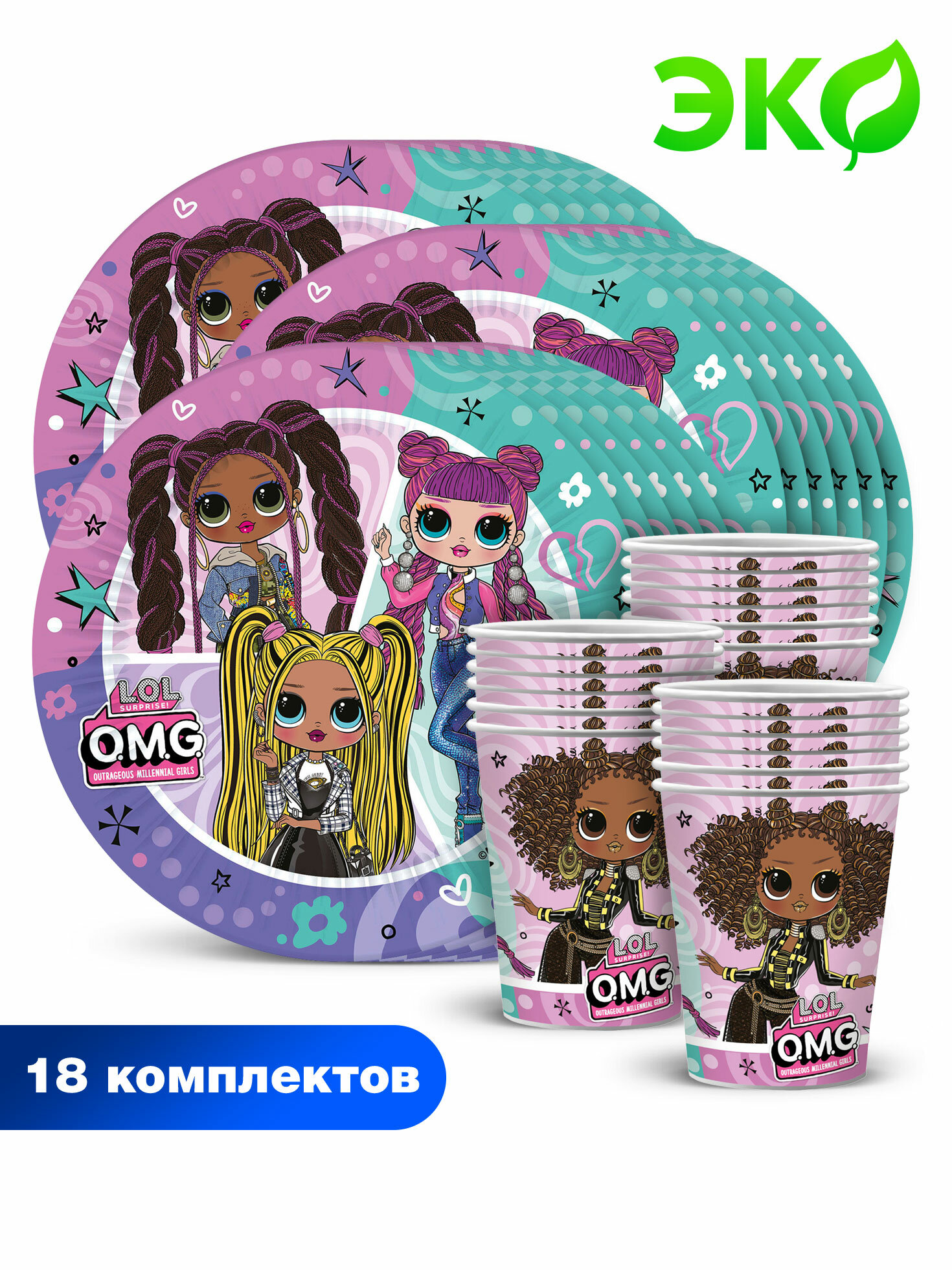 Купить Набор одноразовой бумажной посуды для праздника ND Play / LOL (OMG) (тарелка мал, стакан по 18 шт.)