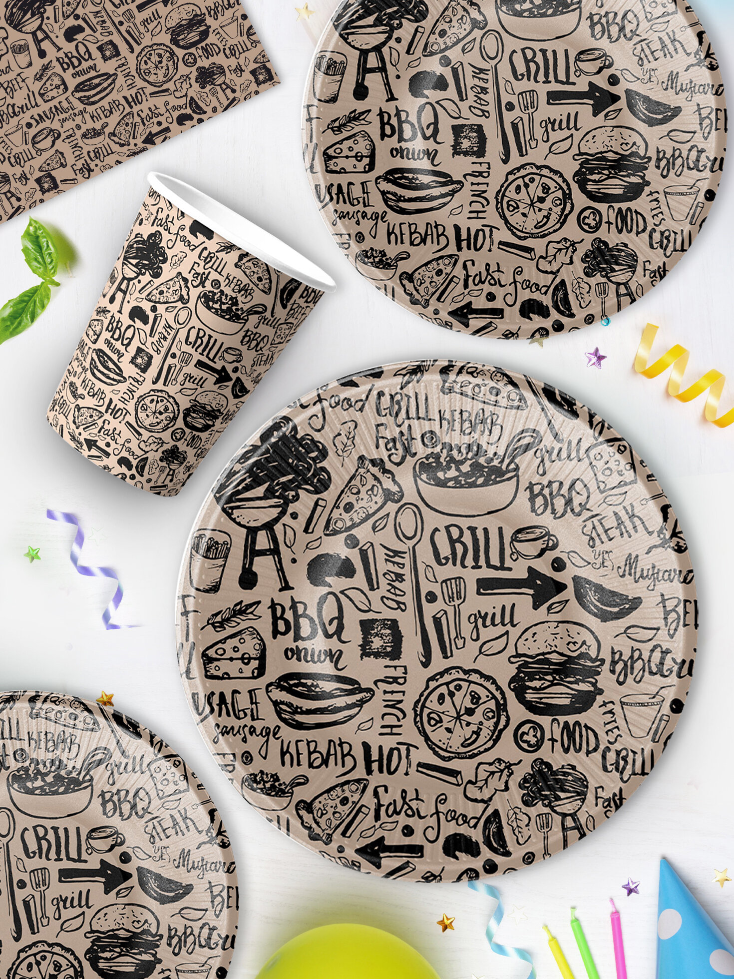 Купить Набор бумажной одноразовой посуды для праздника Крафт (салфетки, стакан, тарелка мал, тарелка бол. по 6шт) ND Play