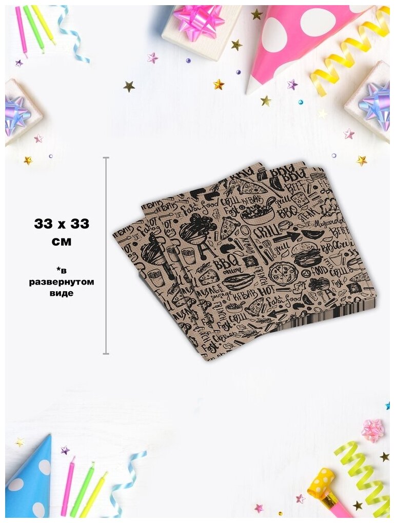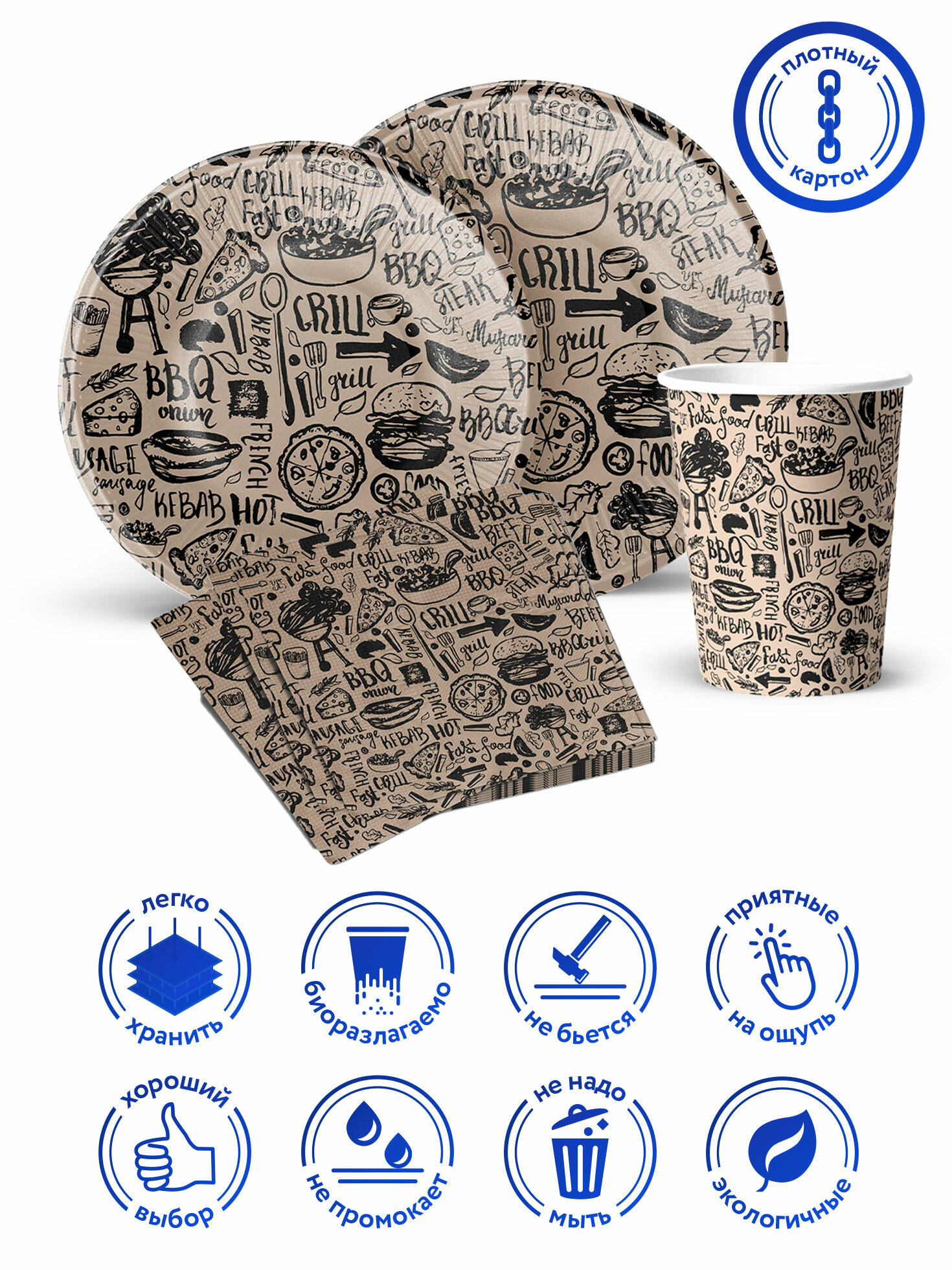 Набор бумажной одноразовой посуды для праздника Крафт (салфетки, стакан, тарелка мал, тарелка бол. по 6шт) ND Play интересное: