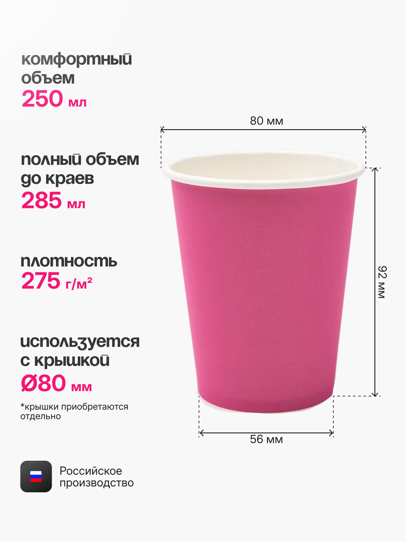 Стаканы бумажные Papcup "Малиновые", однослойные, 250мл, 50шт интересное: