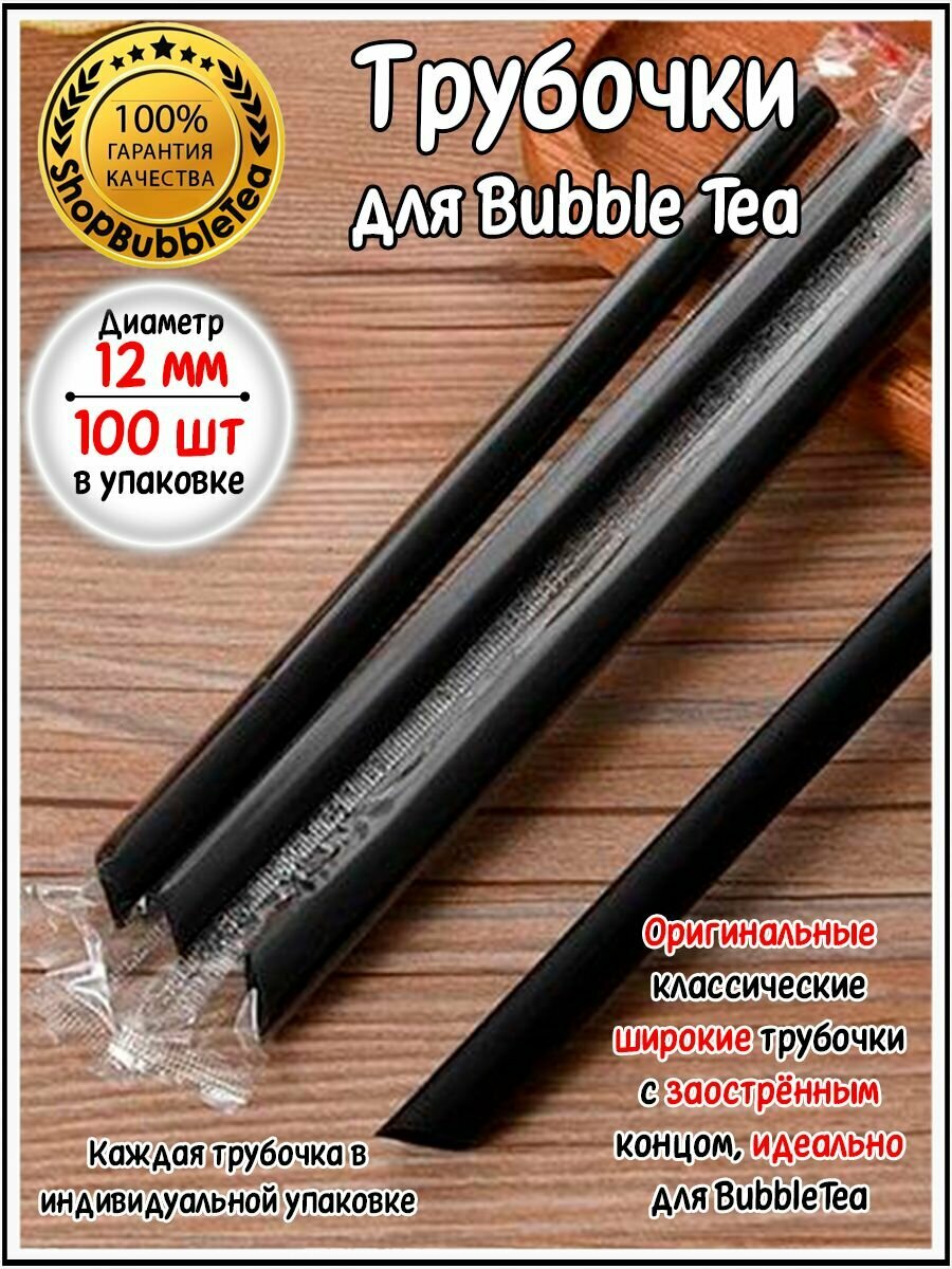 Трубочки широкие заостренные для Bubble Tea (бабл ти) коктейлей и смузи чёрные 100 шт. интересное: