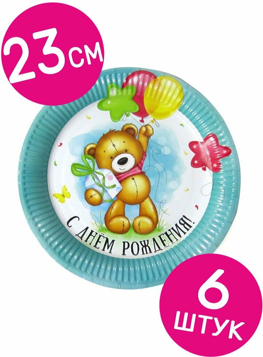 Тарелки бумажные одноразовые Riota Милый Мишка, С Днем рождения, 23 см, 6 шт интересное:
