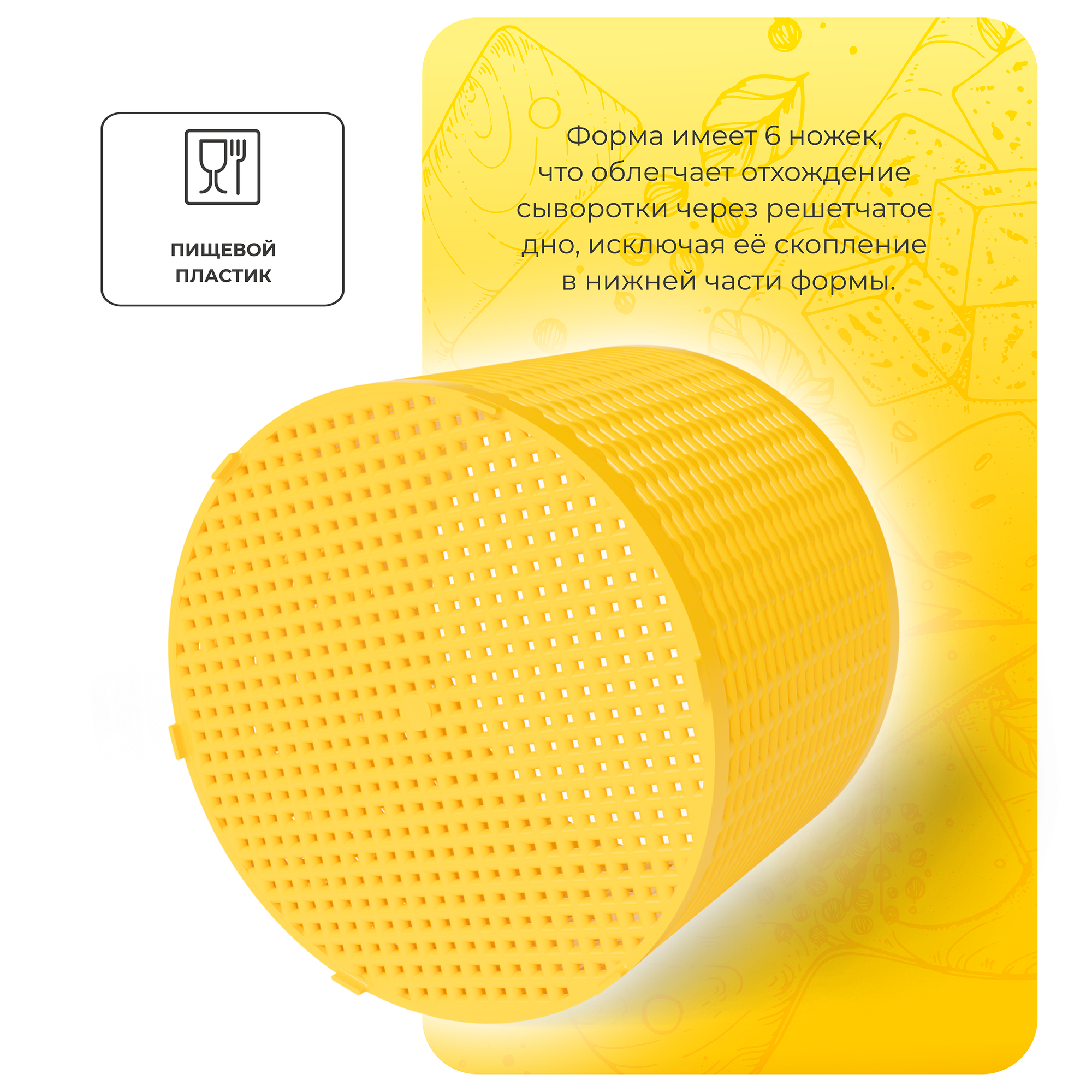 Купить Универсальная форма для приготовления домашнего сыра D20 с вкладышем, желтая