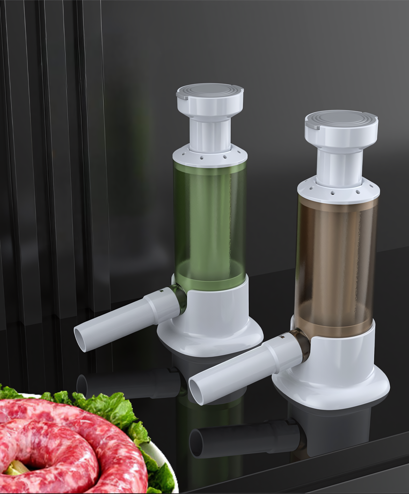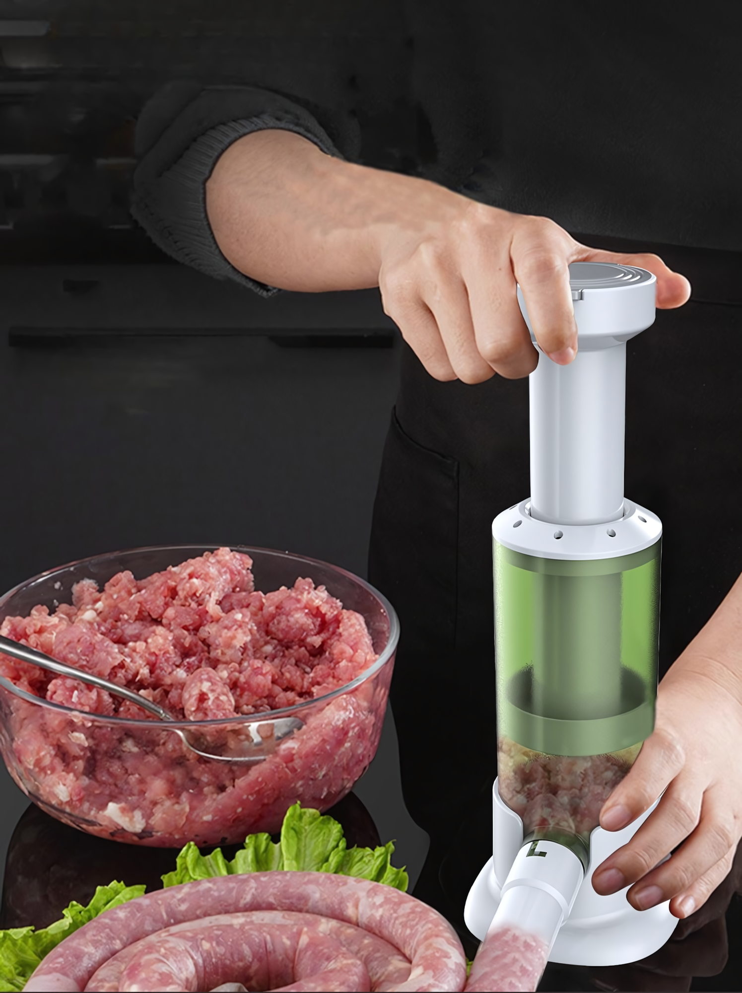 Купить Шприц колбасный для приготовления колбас, сосисок и купат с 4 насадками, цвет зеленый