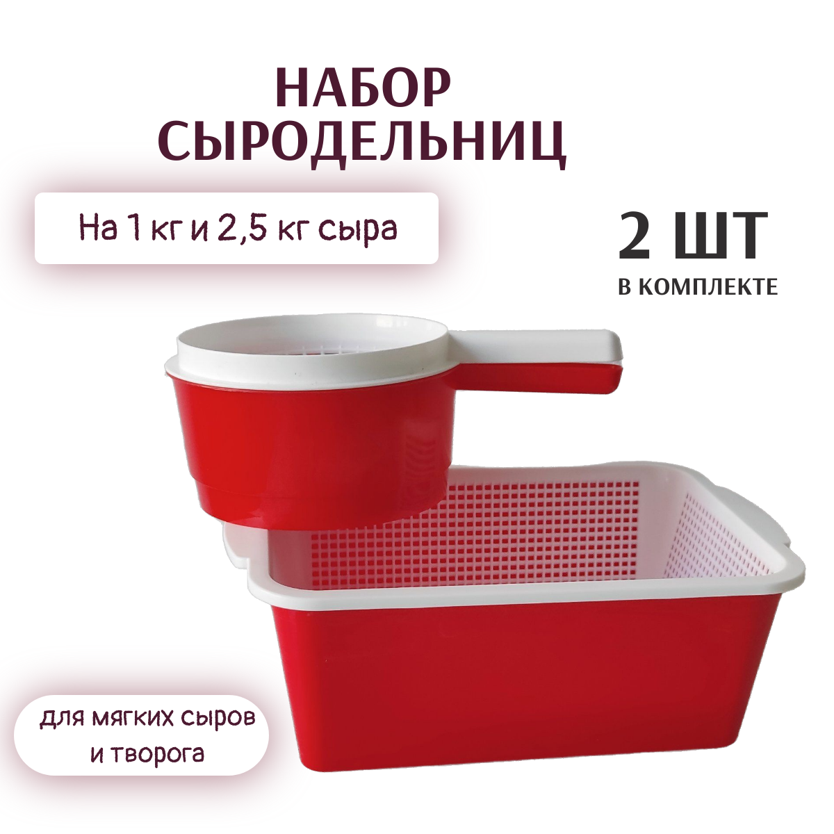 Купить Формы сыродельницы для сыра прямоугольная + круглая, 2 шт набор