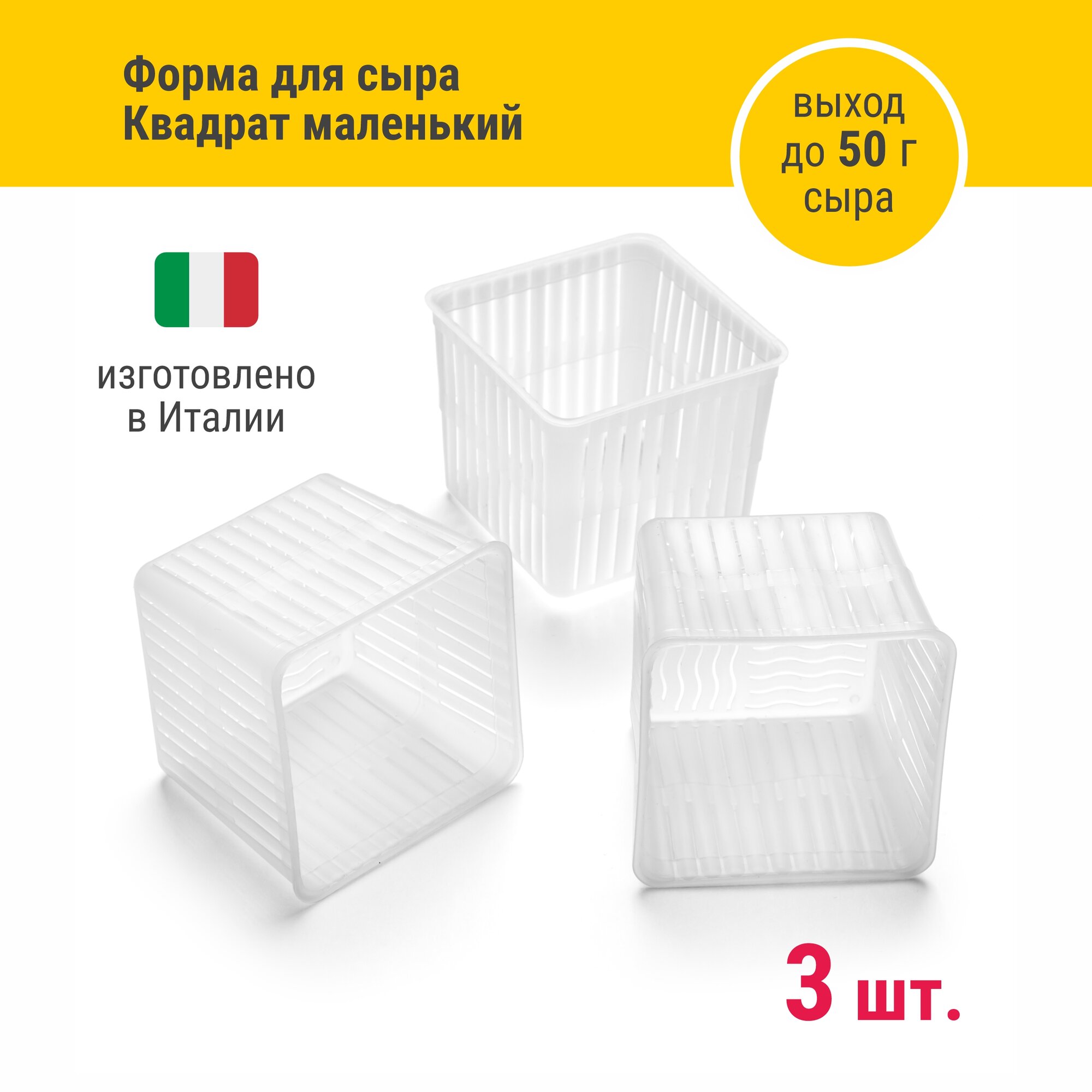 Купить Форма для приготовления домашнего сыра Квадрат маленький 50 г, 3 шт