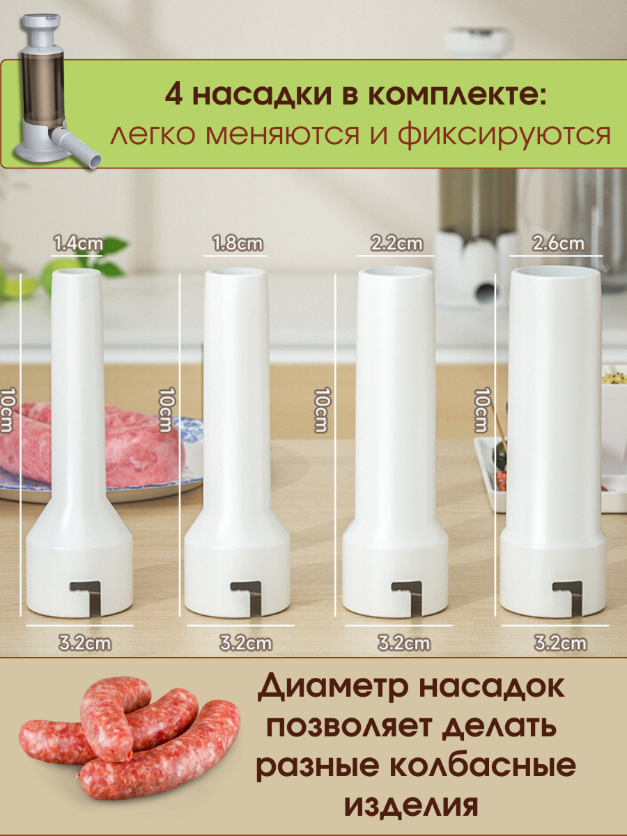 Шприц колбасный для приготовления колбас, сосисок и купат с 4 насадками интересное: