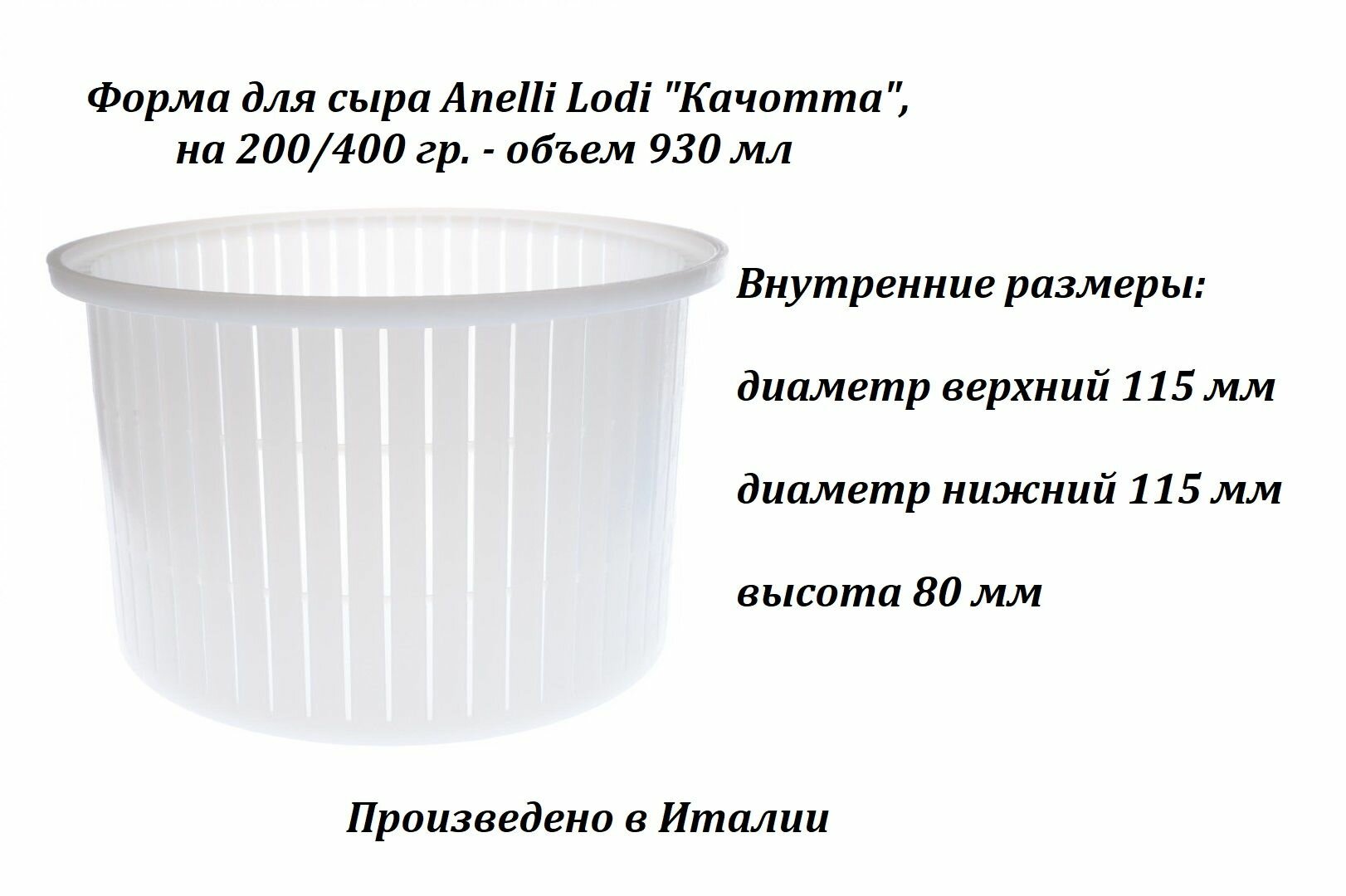 Форма для сыра Anelli Lodi "Качотта", на 200/400 гр. - объем 930 мл интересное: