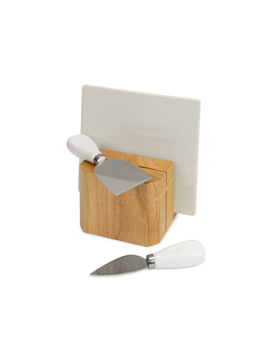 Купить Набор для сыра из 3 предметов «Cheese Break», ножи- белый/серебристый, доска- белый, подставка- натуральный