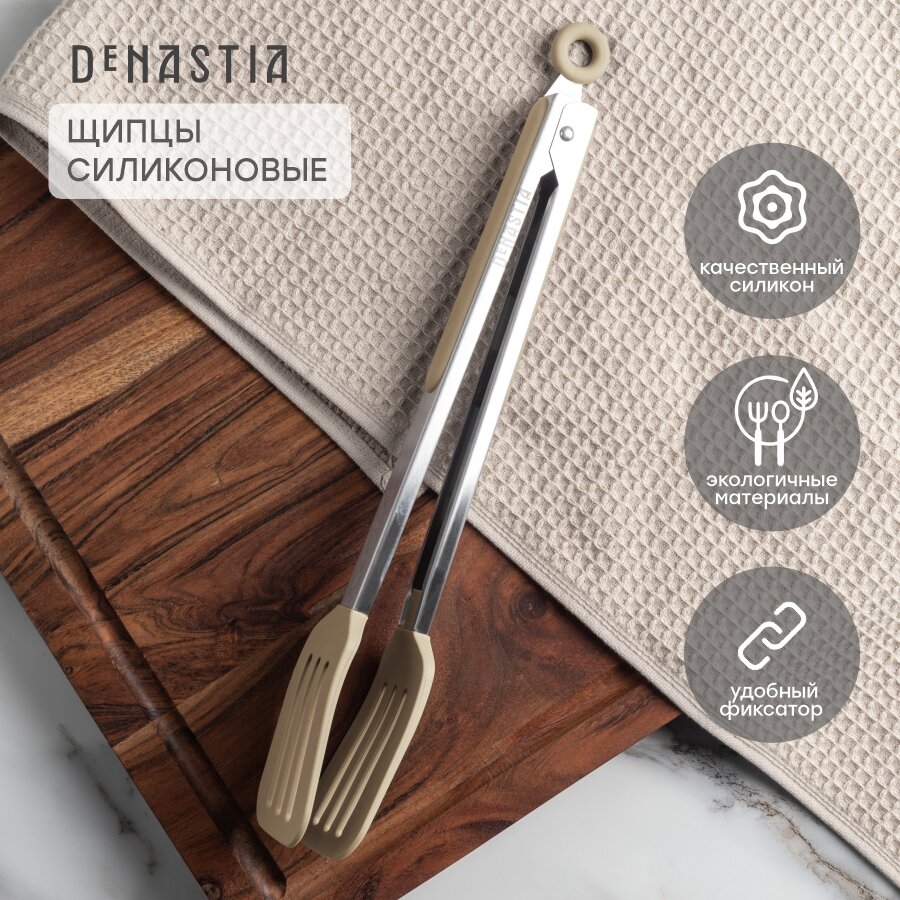 Щипцы кухонные универсальные DeNASTIA 33,5x5,5см, лопатка с прорезями, длинная ручка, цвет бежевый интересное: