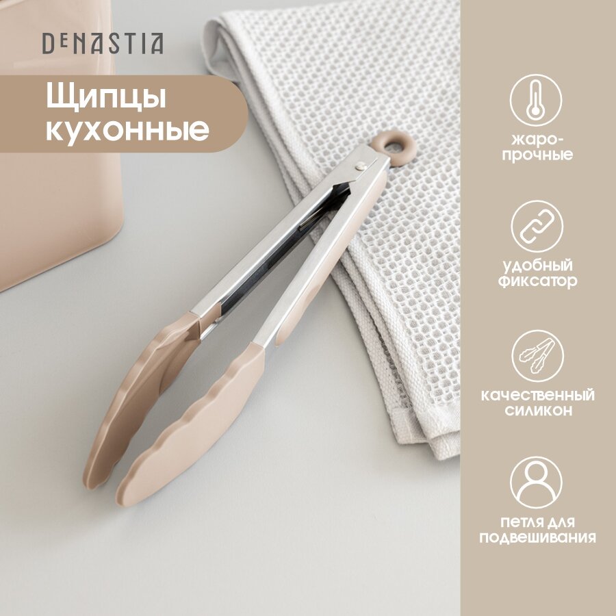Щипцы кухонные универсальные DeNASTIA 27x3, нерж. сталь+силикон, цвет бежевый A000241 интересное: