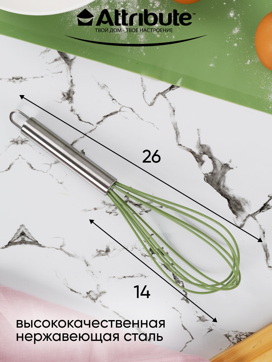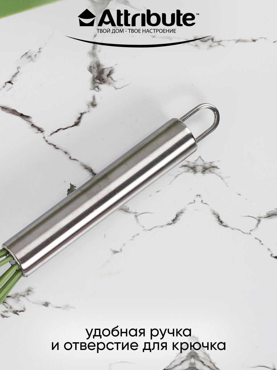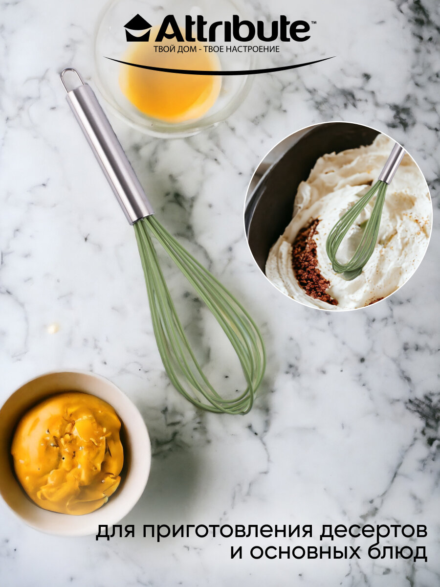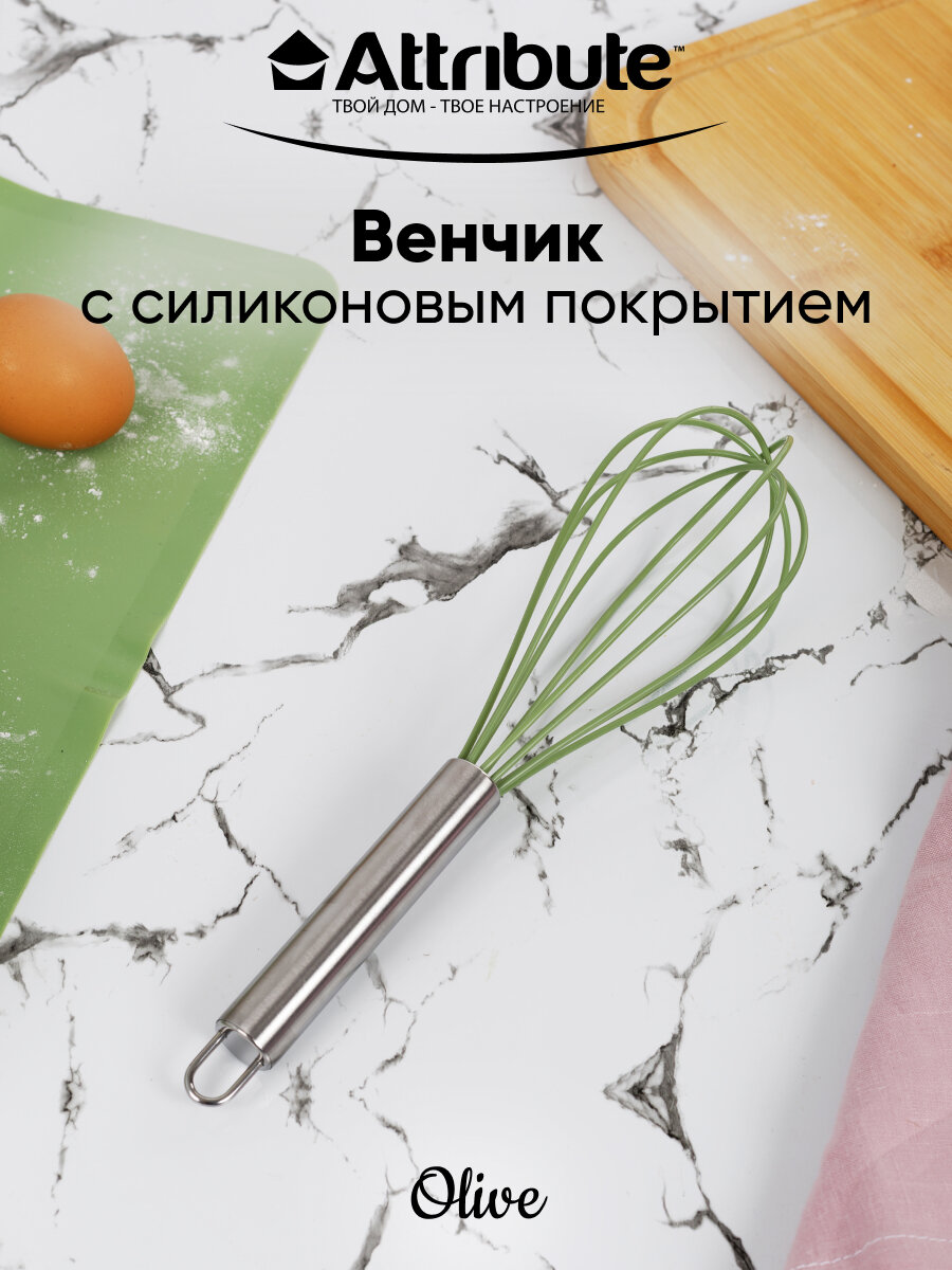 Венчик для взбивания ATTRIBUTE "OLIVE", нержавеющая сталь/силикон, цвет оливковый интересное: