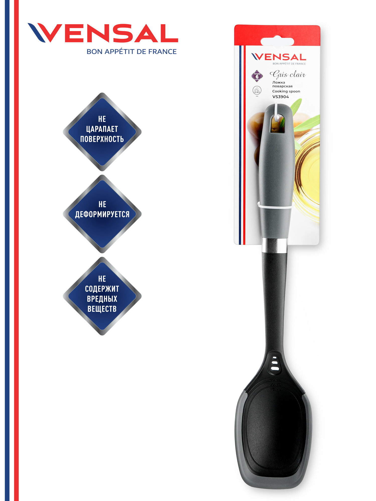 Ложка поварская Gris clair Vensal VS3904, рабочая часть - нейлон, силикон, ручка- пластик, серая/черная интересное: