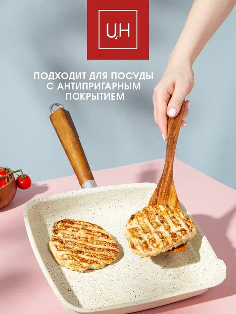 Набор кухонных принадлежностей UR HOME, 7 предметов, деревянные лопатки с подставкой стакан, кухонная утварь интересное: