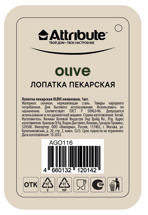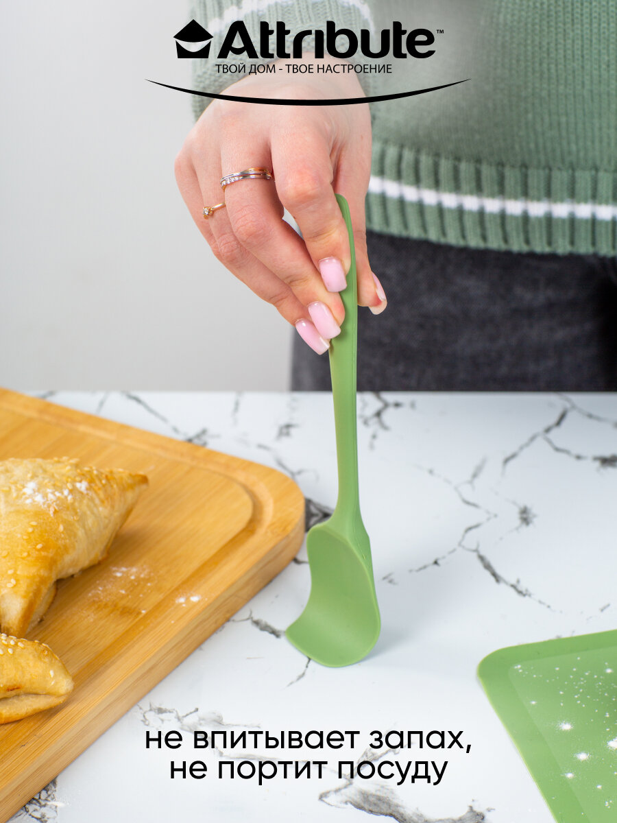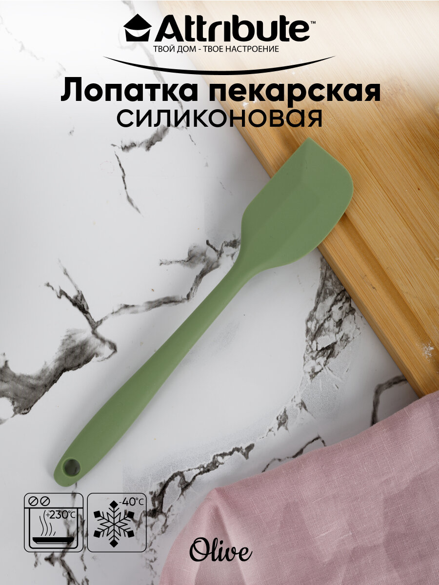 Силиконовая пекарская лопатка кухонная ATTRIBUTE "OLIVE", цвет оливковый интересное: