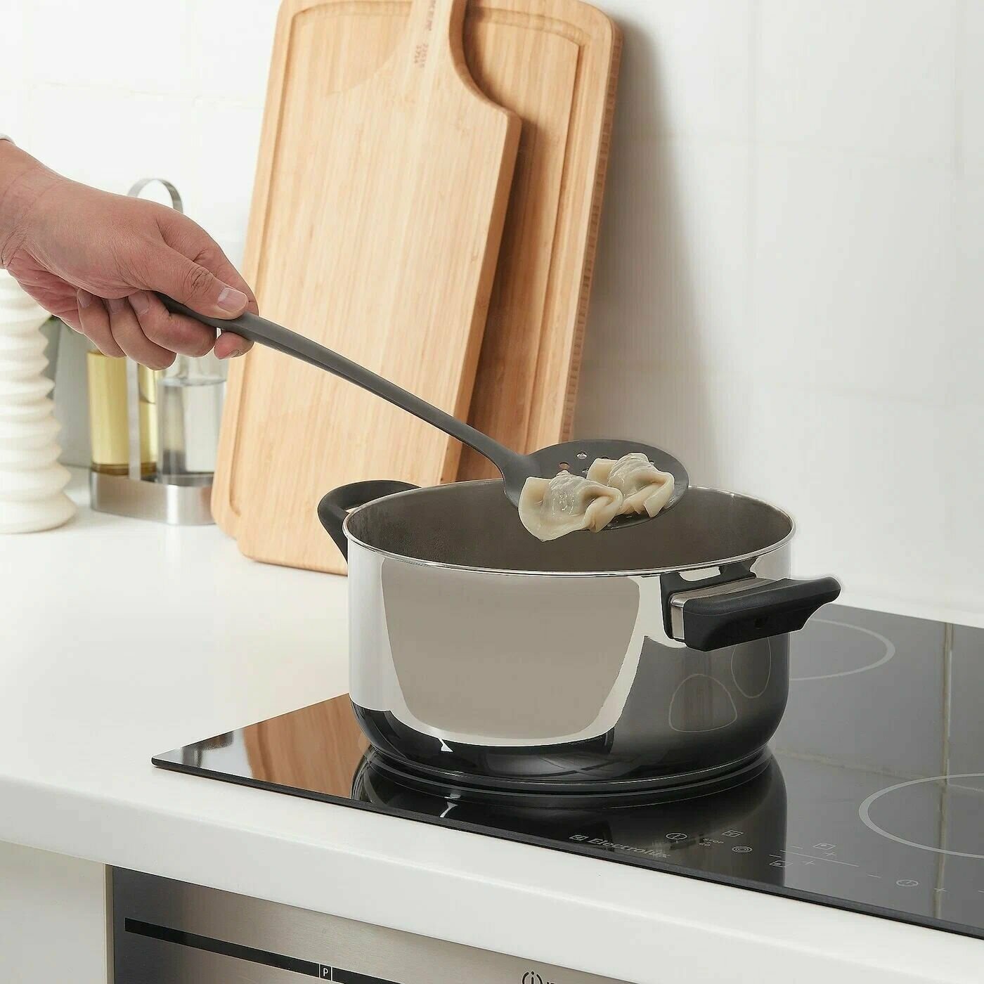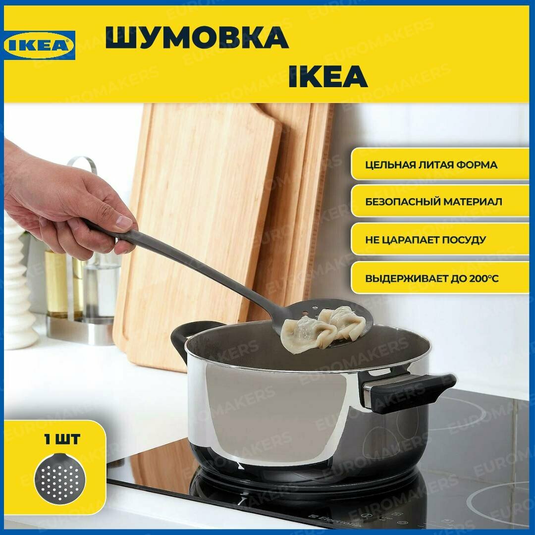 Шумовка "SOPPKOK" IKEA, длина 34см, для антипригарного покрытия, серая, пластик интересное: