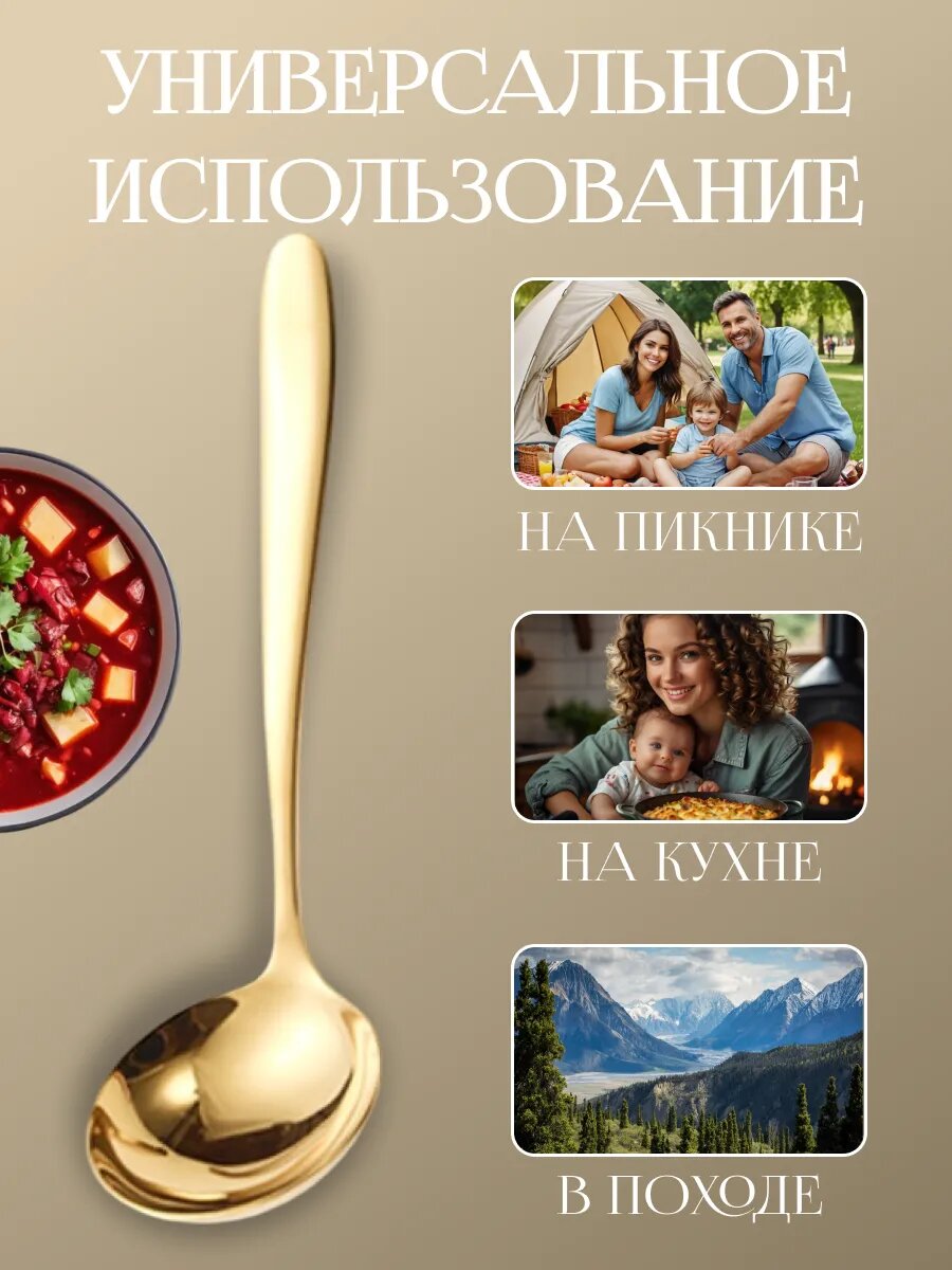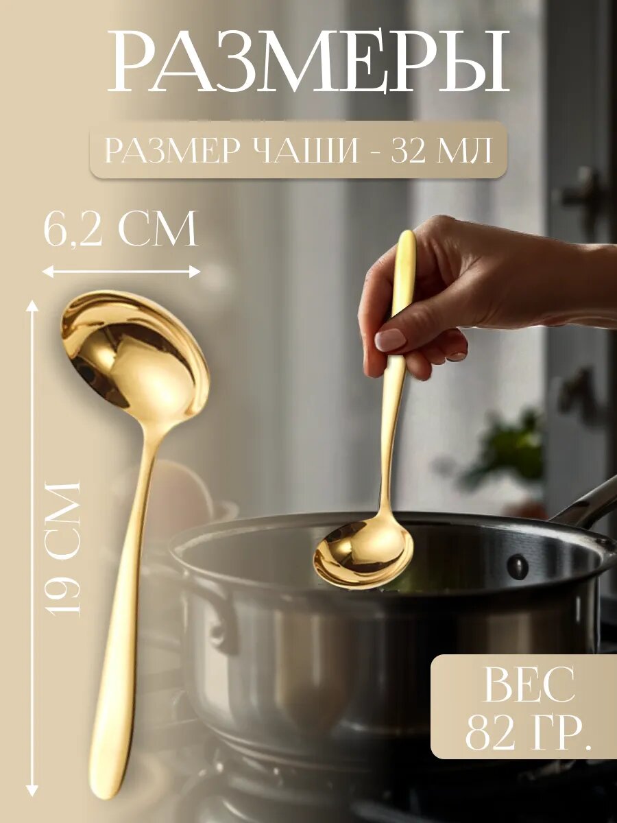 Половник золотой маленький. Нержавеющая сталь. Для блинов, супа, пельменей. интересное: