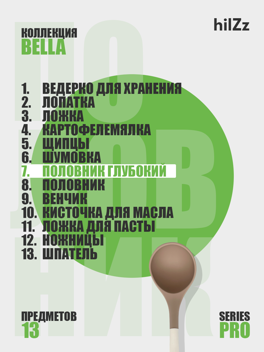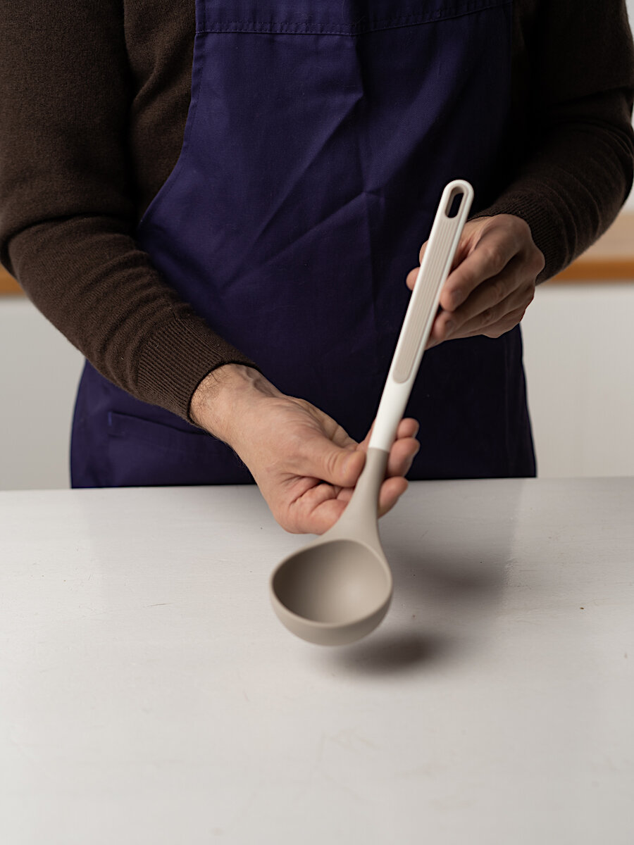 Кухонный половник hilZz из силикона и пластика, 32 см, безопасен для всех покрытий, молочно-серый интересное: