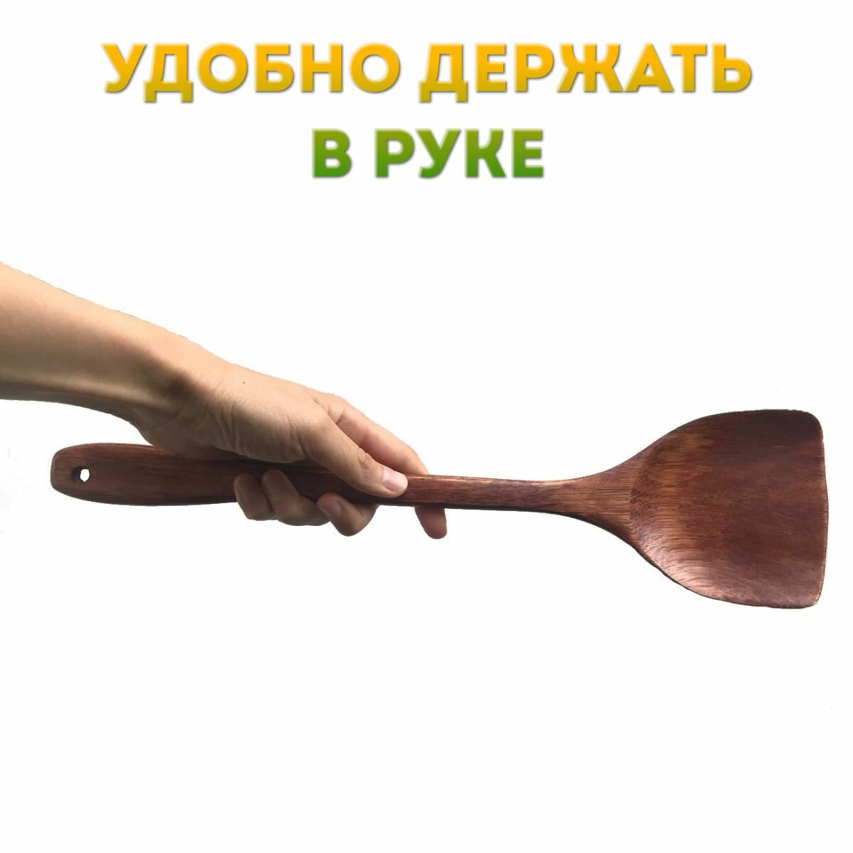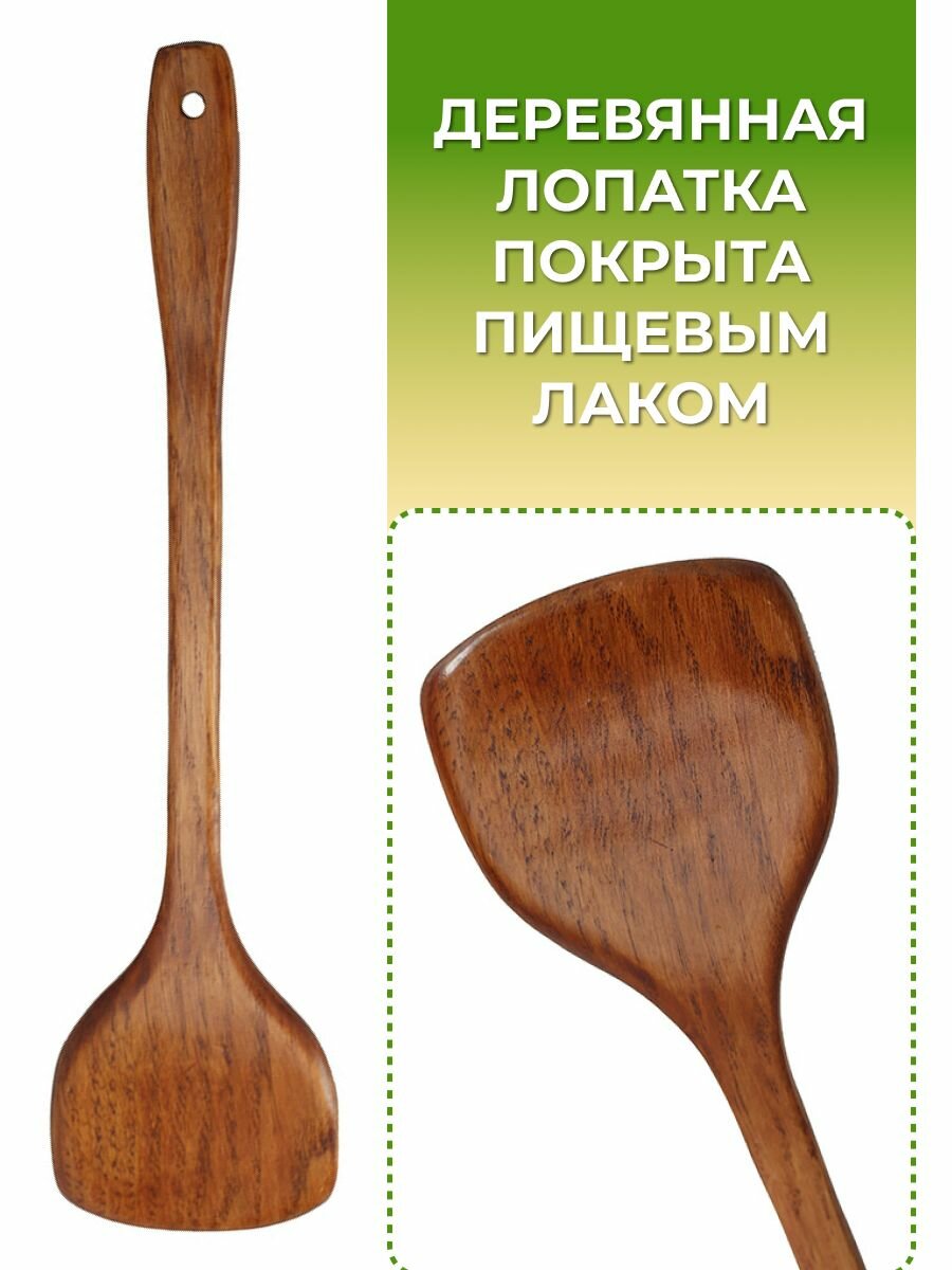 Лопатка деревянная 39 см, кулинарная лопатка для посуды с антипригарным покрытием, деревянная ложка для кухни интересное: