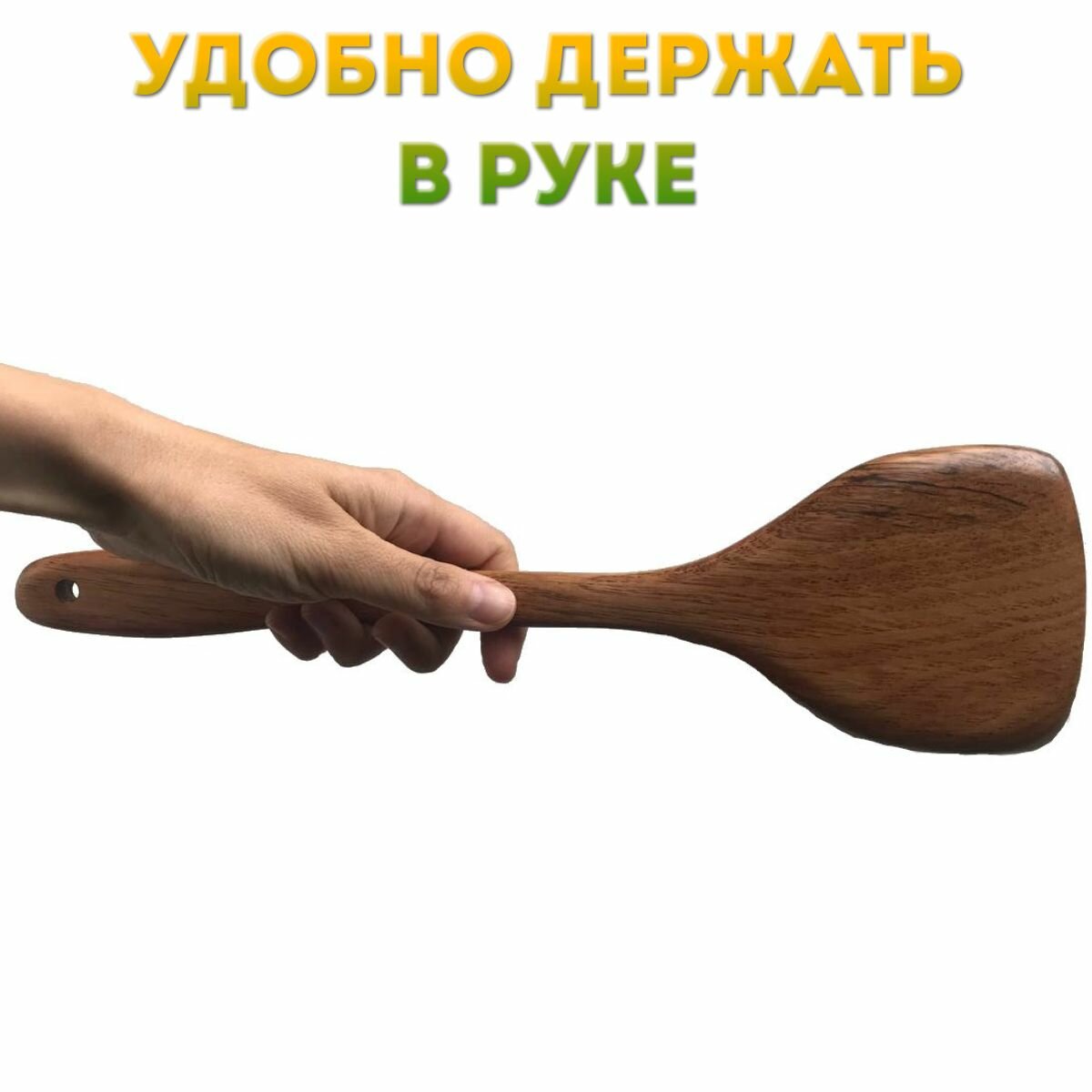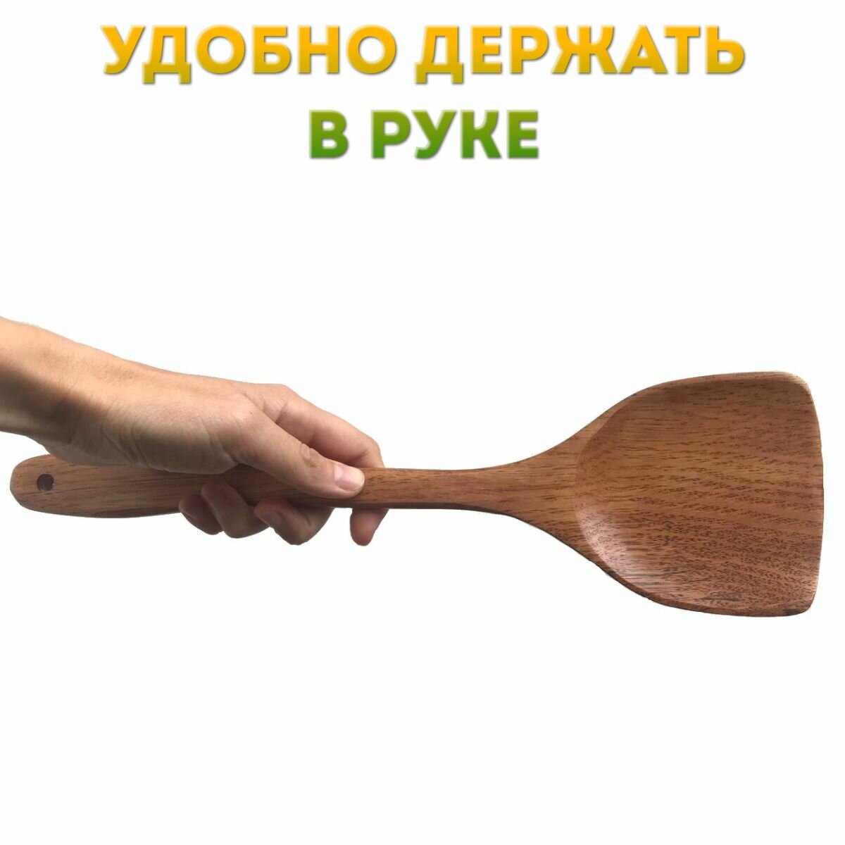 Лопатка деревянная 35 см, кулинарная лопатка для посуды с антипригарным покрытием, деревянная ложка для кухни интересное:
