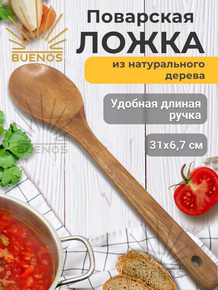Ложка деревянная большая 31 см/Лопатка для антипригарной посуды интересное: