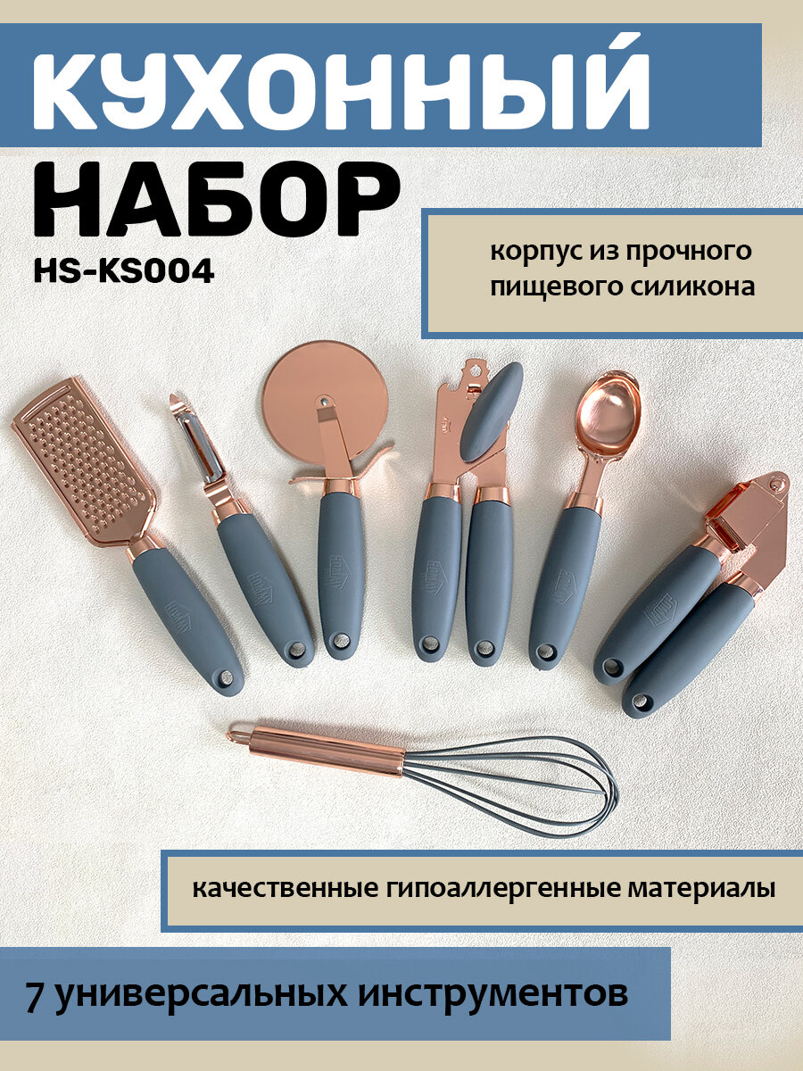Набор кухонных принадлежностей из силикона и нержавеющей стали, 7 предметов HOMMY STORY HS-KS006 интересное: