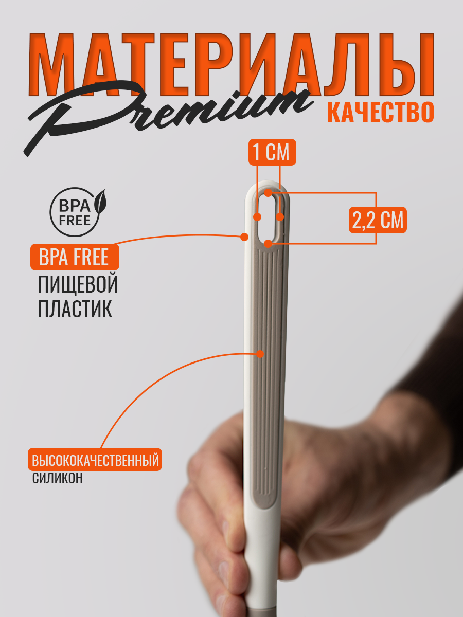 Кухонная шумовка HilZz, силикон / пластик, 32 см, молочно-серая интересное: