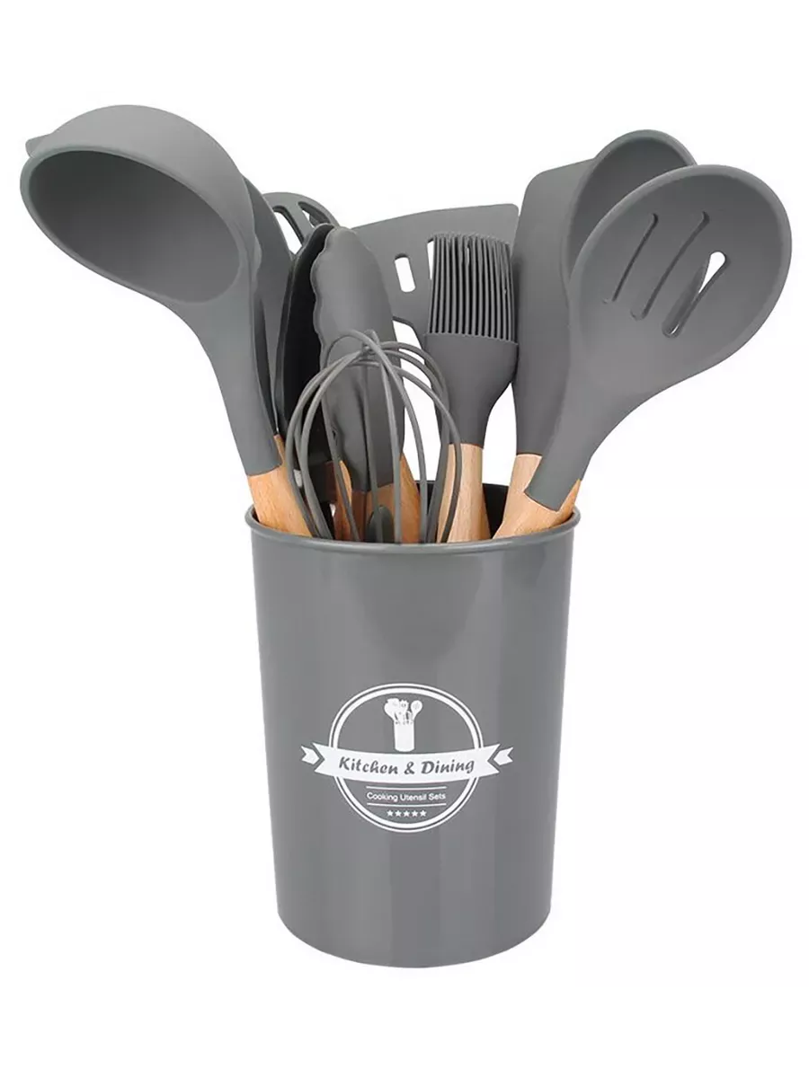 Набор силиконовых кухонных принадлежностей с деревянными ручками 12 в 1, DASWERK