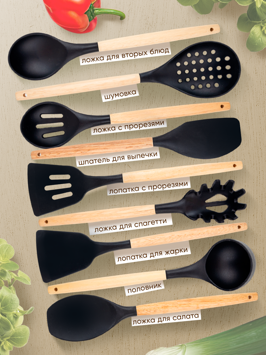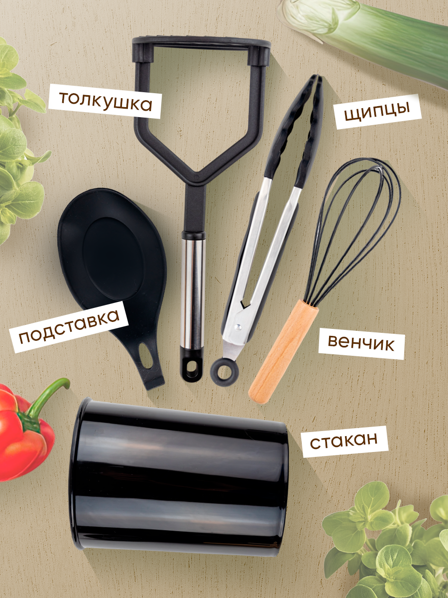 Набор кухонных принадлежностей BanZzanas 14 предметов, черный интересное:
