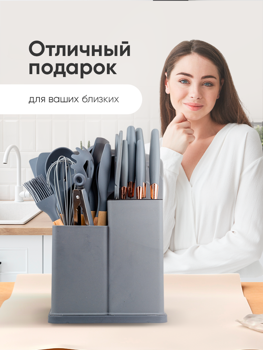 Набор кухонных принадлежностей 19 предметов, серый интересное: