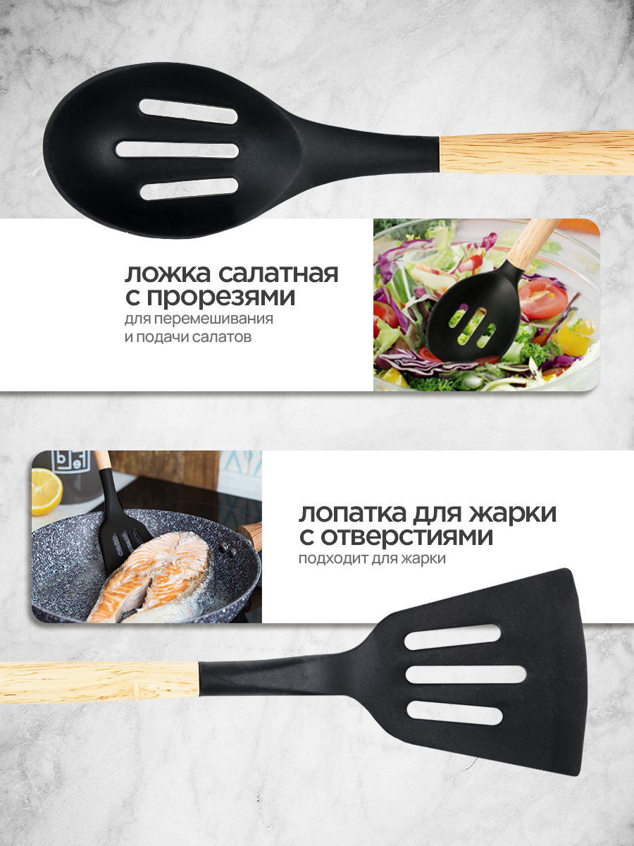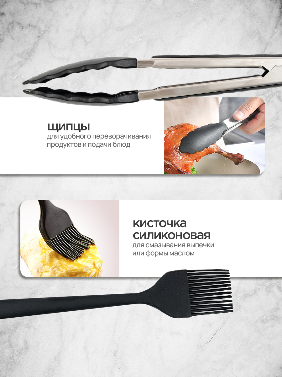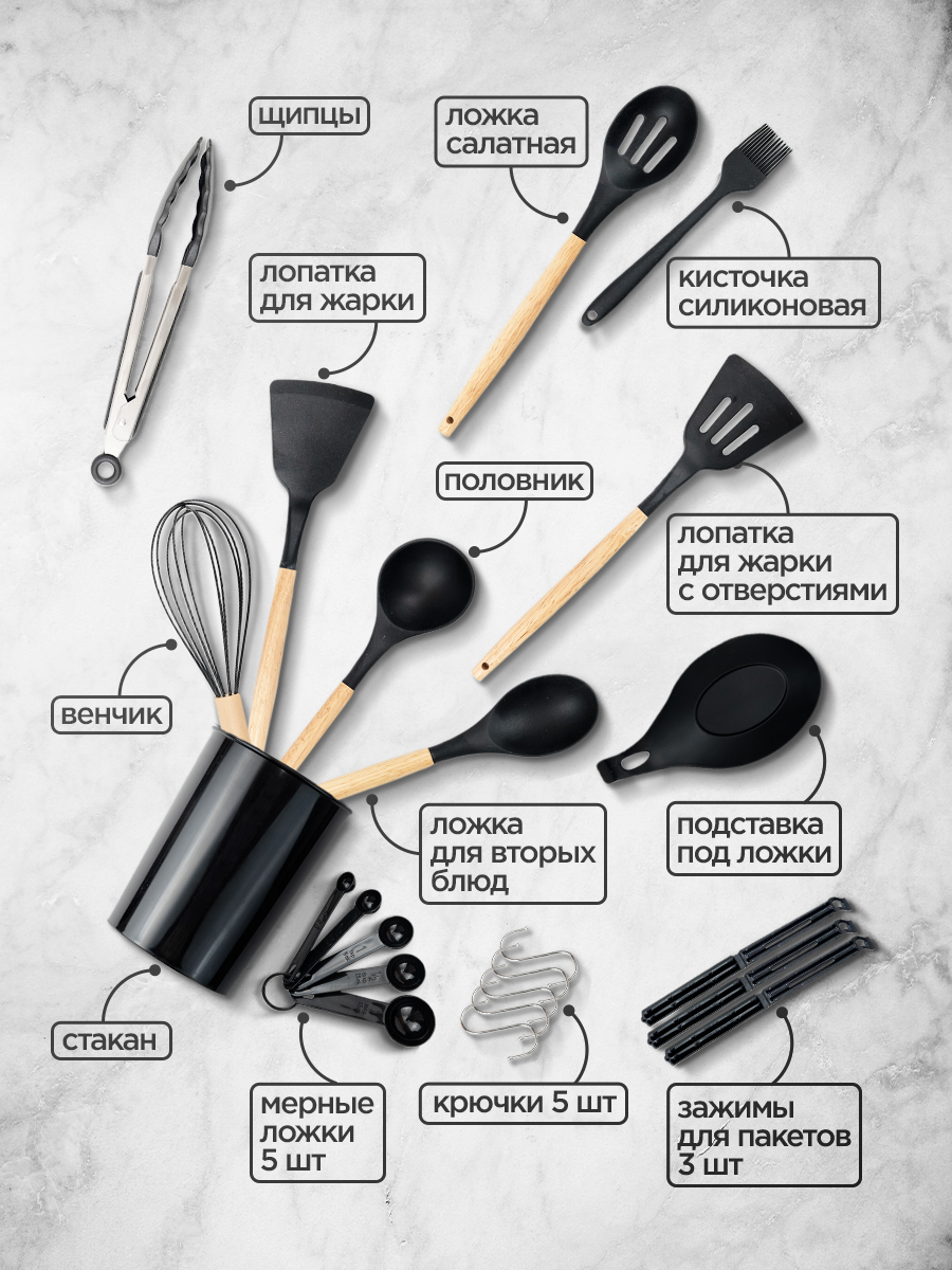 Набор кухонных принадлежностей 19 предметов, черный
