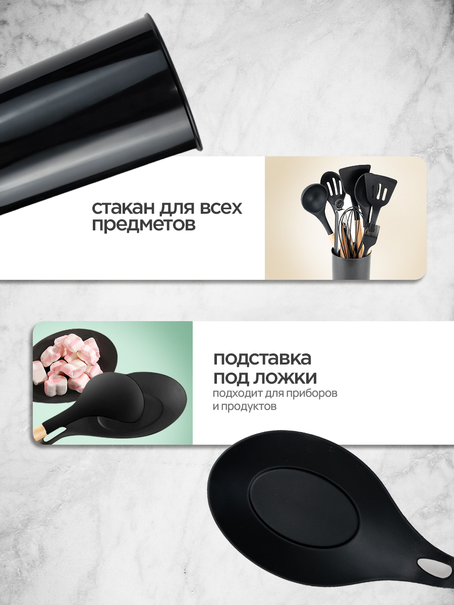 Набор кухонных принадлежностей BanzZanas, 43 элемента, 36x23 см, чёрный