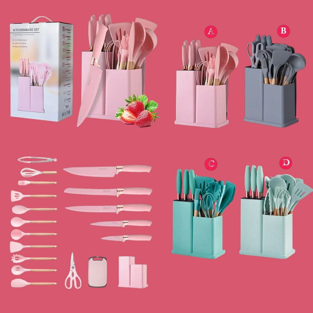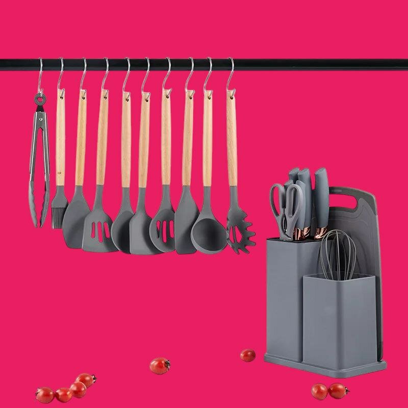 Купить Набор кухонных принадлежностей, 19 предметов, пластик, силикон