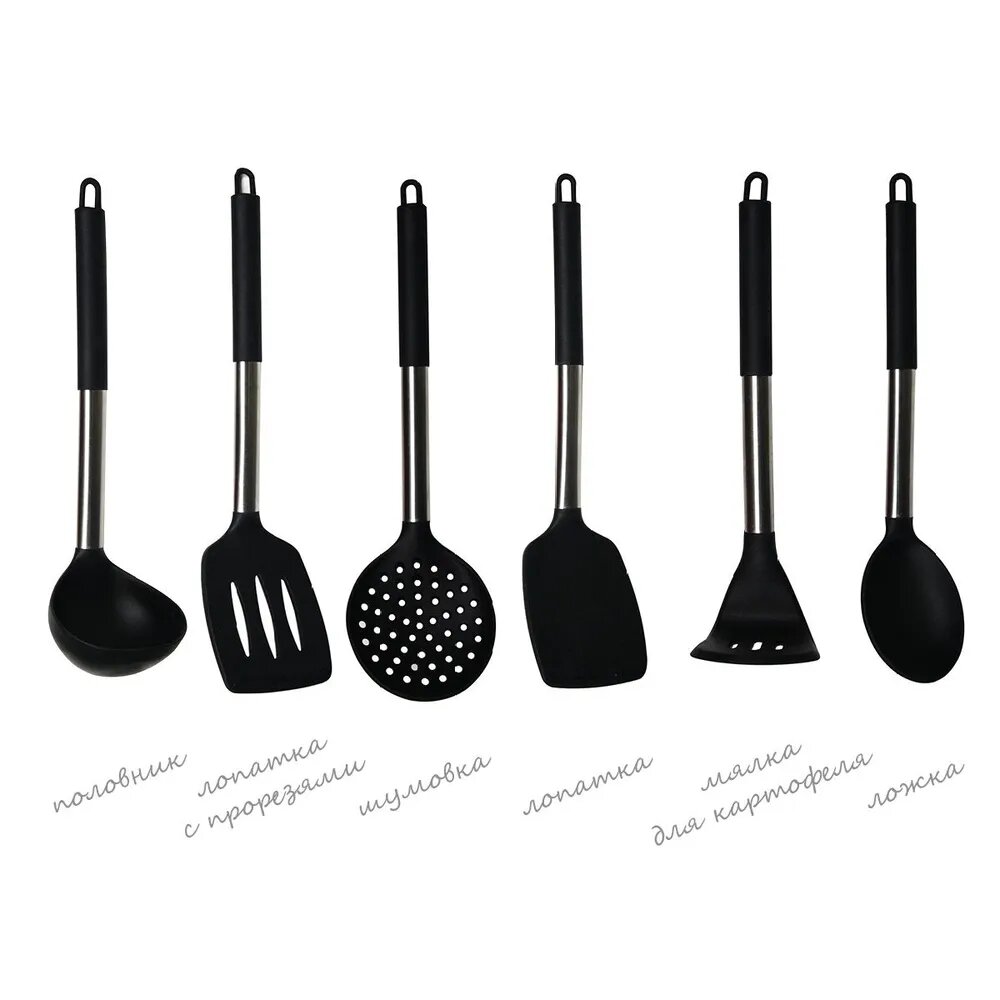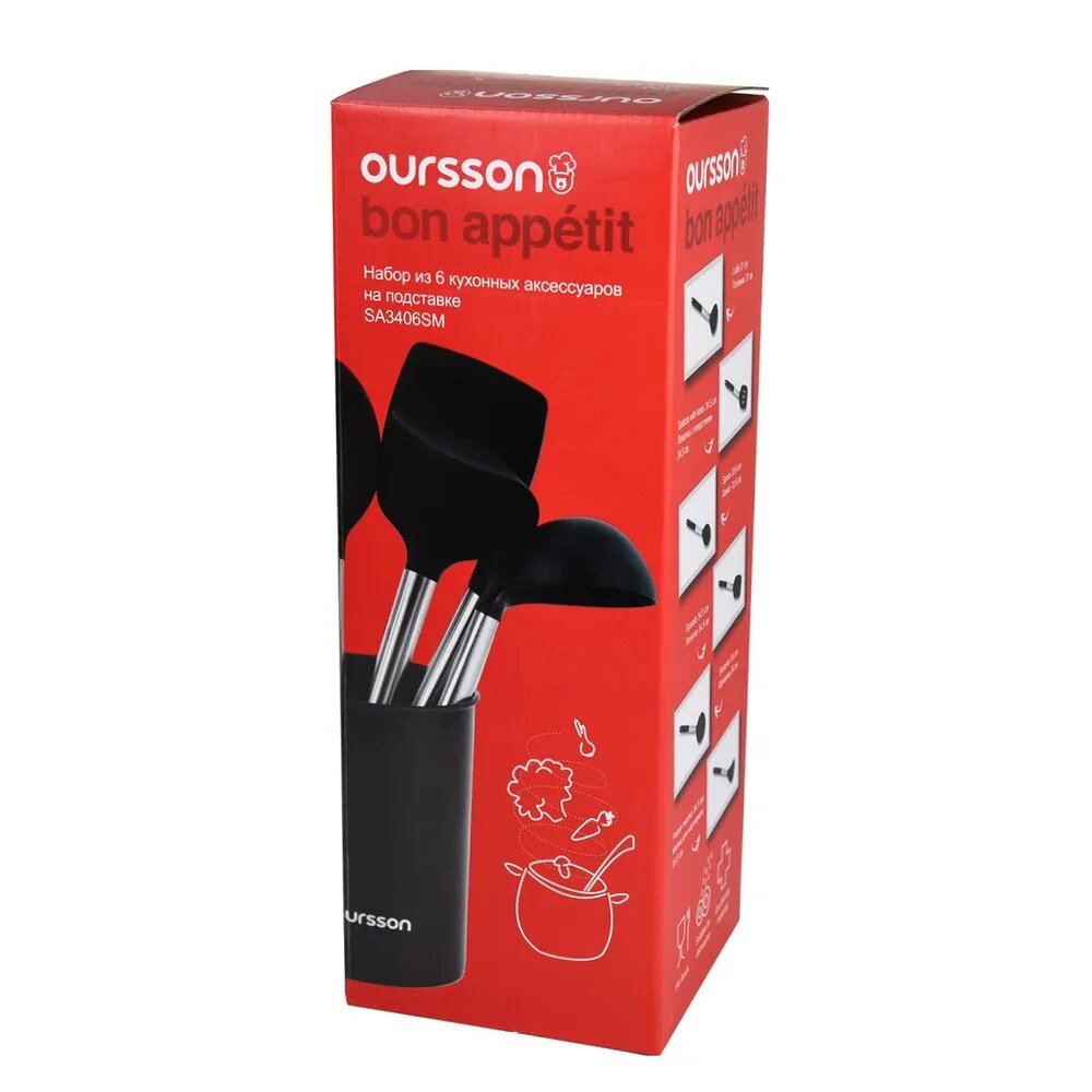 Набор кухонных аксессуаров Oursson "SA3406SM/BL", нержавеющая сталь, чёрный интересное: