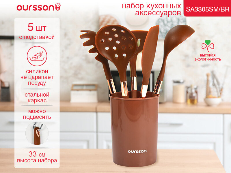 Набор кухонных аксессуаров Oursson SA3305SM/BR, нержавеющая сталь/силикон, 5 предметов интересное: