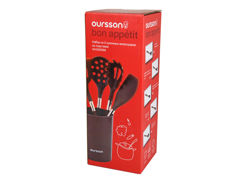 Купить Набор кухонных аксессуаров Oursson SA3305SM/BR, нержавеющая сталь/силикон, 5 предметов