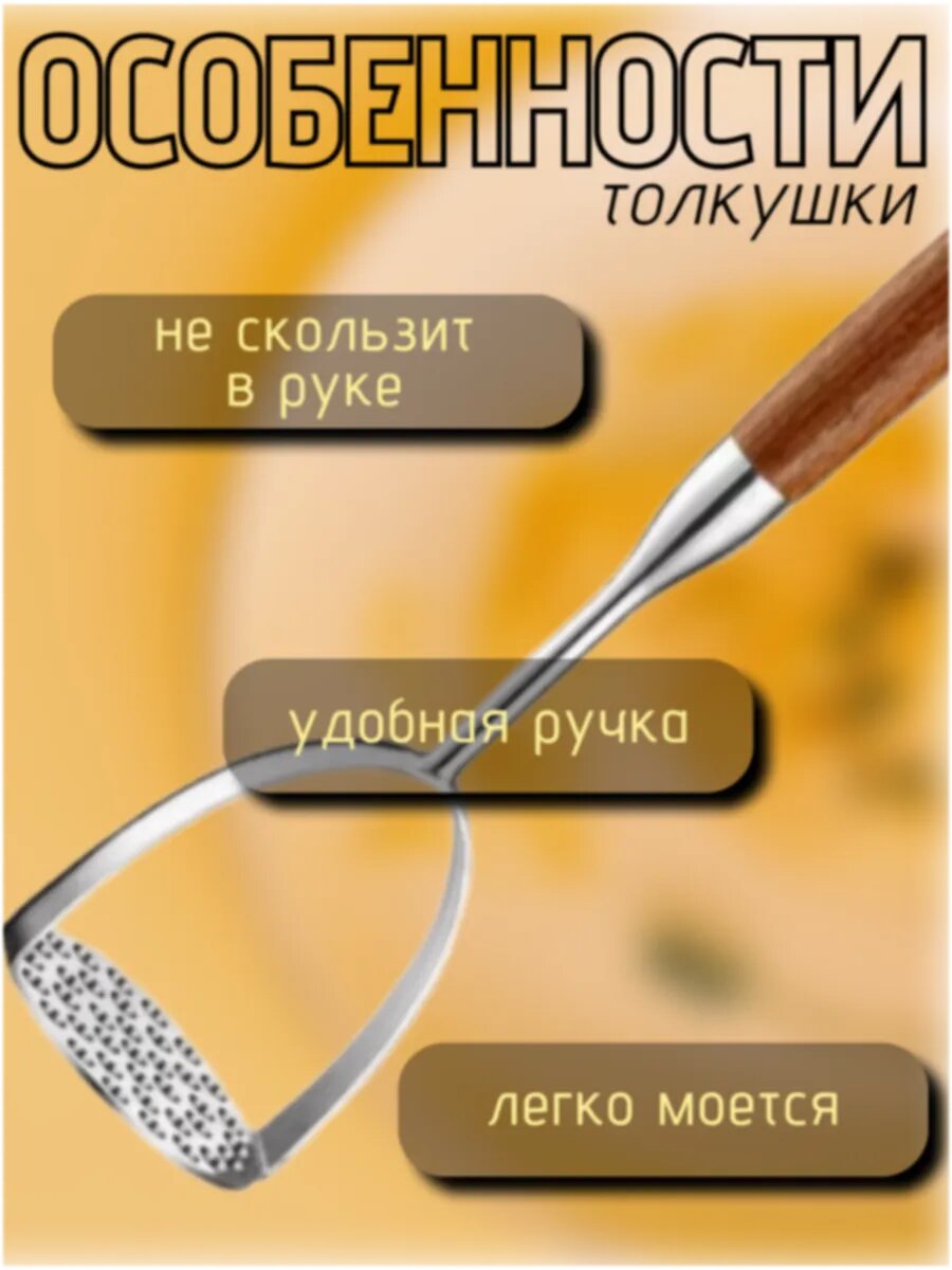 Толкушка для пюре металлическая с деревянной ручкой, нержавеющая сталь