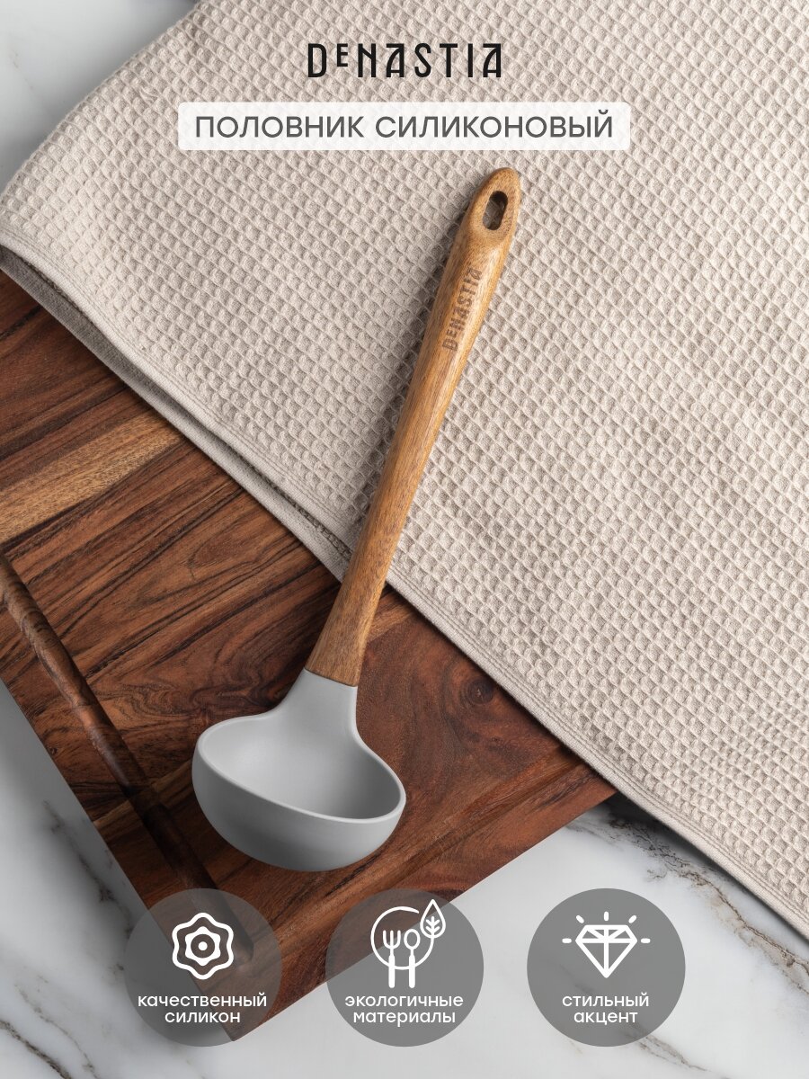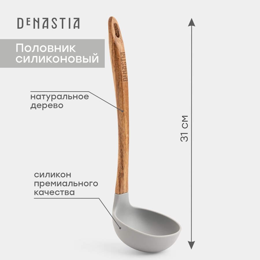Половник DeNASTIA с деревянной ручкой 31x8x1,6см, силикон + акация, серый интересное: