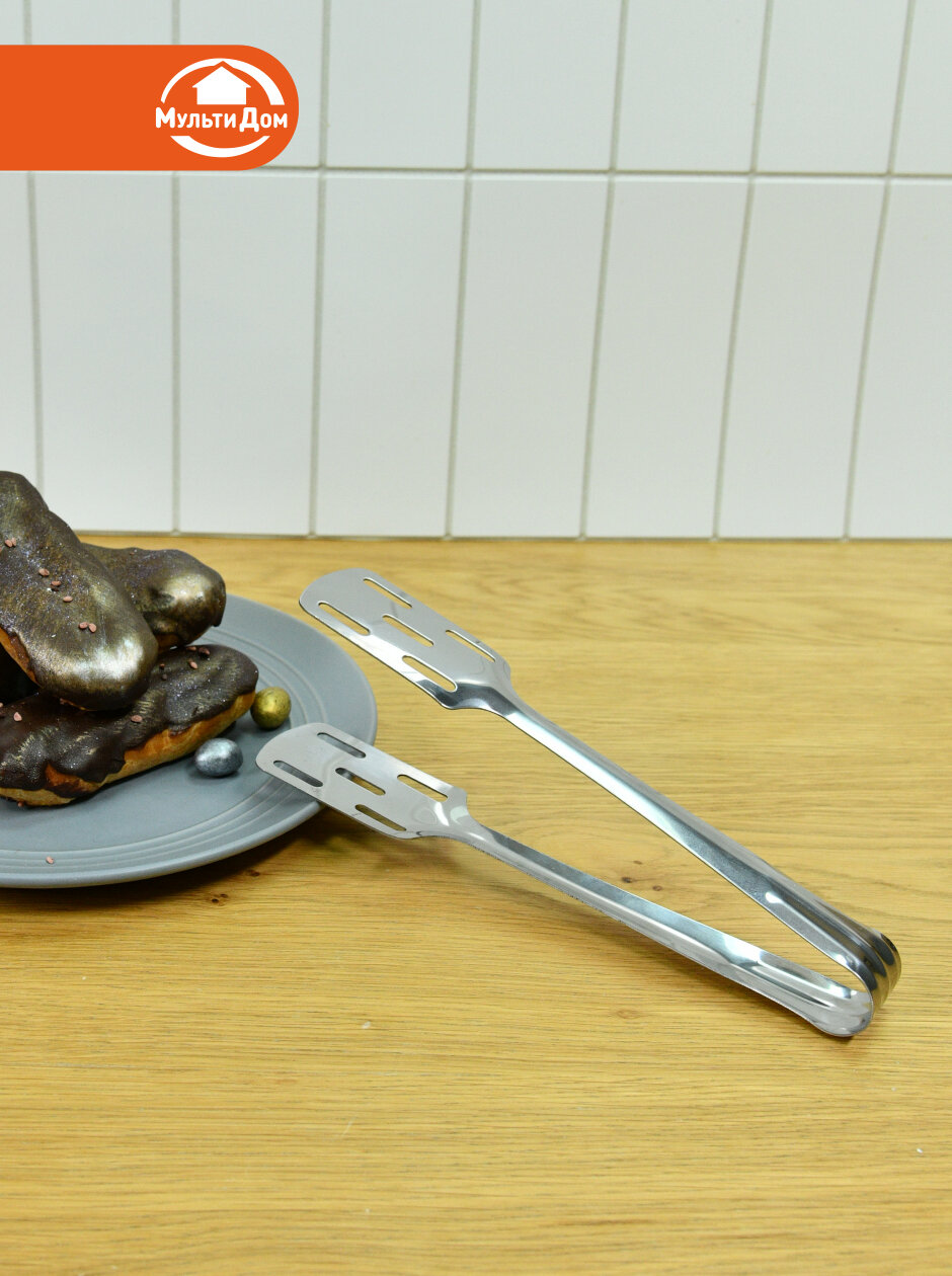 Щипцы универсальные, нержавеющая сталь, длина 23.5см для кухни, барбекю