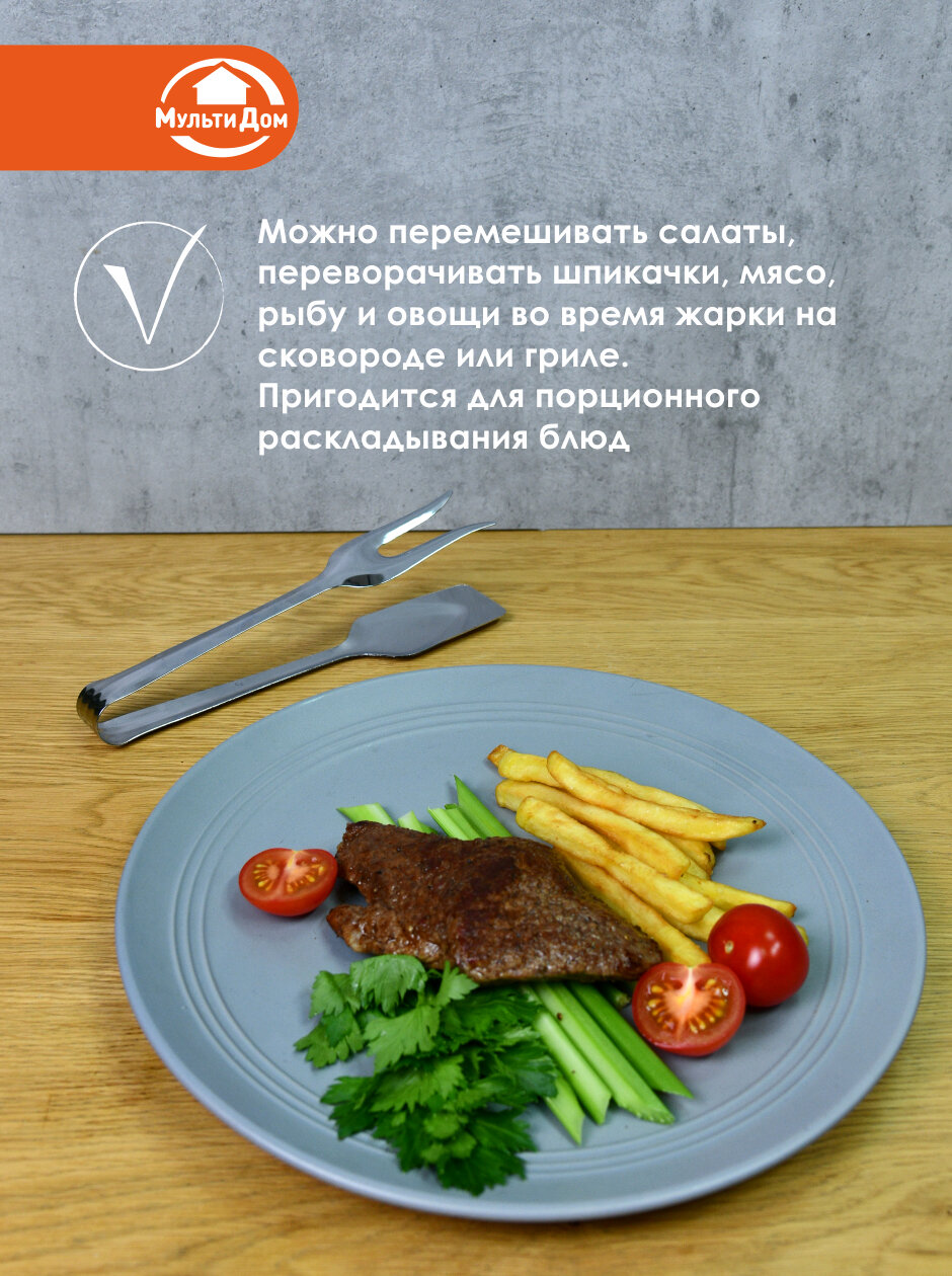Щипцы универсальные, нержавеющая сталь, длина 23.5см для кухни, барбекю